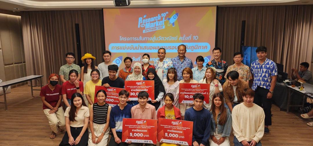 ในการแข่งขันโครงการเส้นทางสู่นวัตวณิชย์ Research to Market ระดับภูมิภาค (ภาคใต้) มีตัวแทนจากมหาวิทยาลัยทักษิณเข้าร่วมกิจกรรมจำนวน 5 ทีม ได้รับคำชมและคำแนะนำจากคณะกรรมการที่ดีในการต่อยอด และพัฒนาต่อไป ทีมที่ร่วมเข้าแข่งขันครั้งนี้ จากมหาวิทยาลัยทักษิณ ได้แก่ทีม