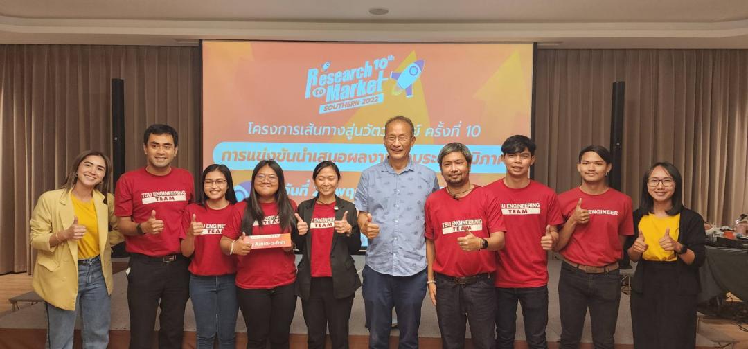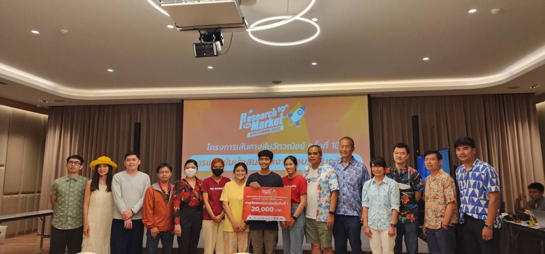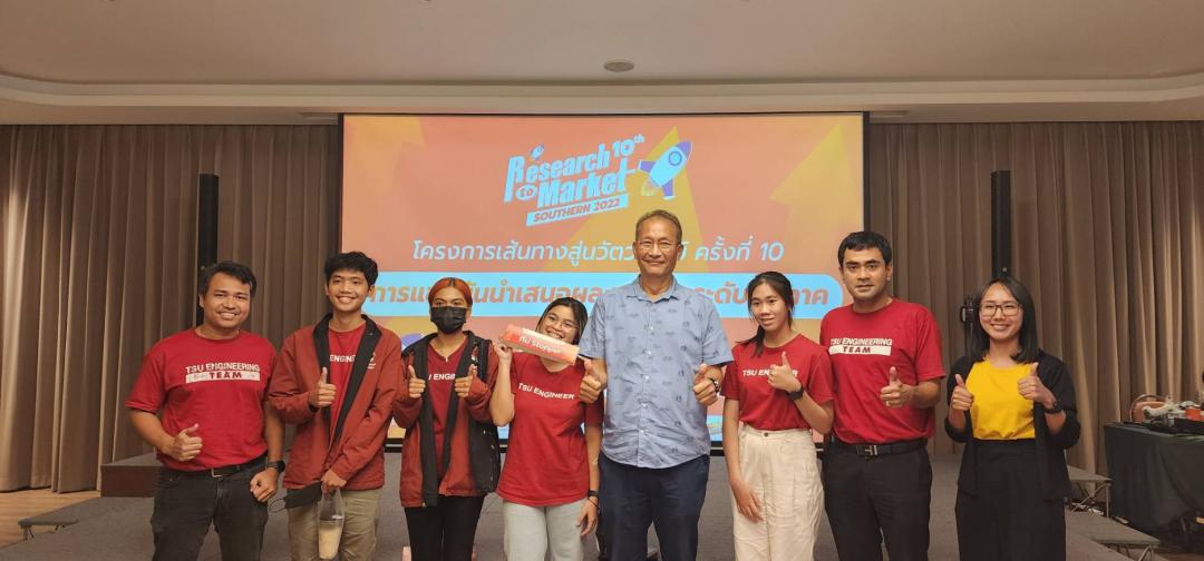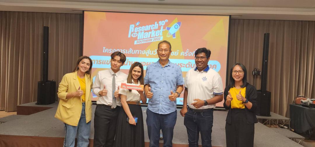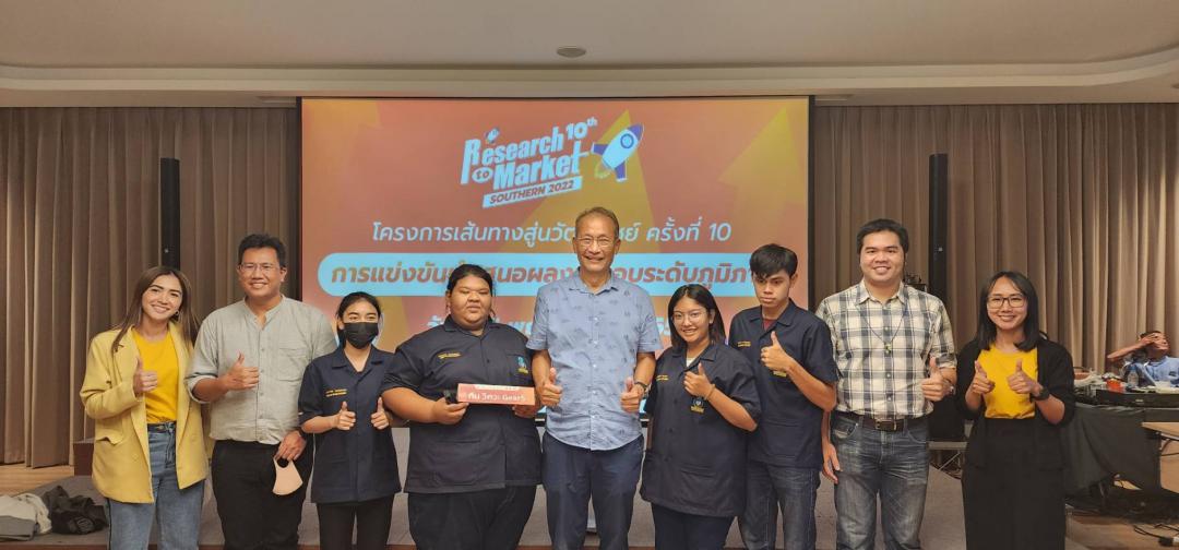 สมาชิกในทีม : นายสุทวัส ทุมรัตน์,นางสาวกันยารัตน์ นวนนุ่ม,นางสาวนันทวดี จินดาวงค์,นางสาวอาภัสนา อุชุภาพ, อาจารย์ที่ปรึกษา : อาจารย์ ดร.ศุภชัย สัตยานุรักษ์,อาจารย์ ดร.อนิดา เพ็ชรแก้ว และดร.วีระวุฒิ แนบเพชร ที่จะเป็น 1 ใน 5 ทีมของตัวแทนภาคใต้ ในการแข่งโครงการเส้นทางสู่นวัตวณิชย์ Research to Market ระดับประเทศต่อไป