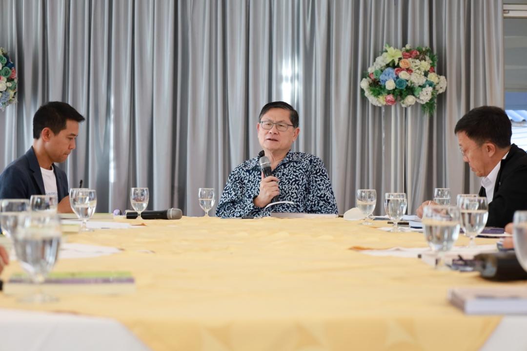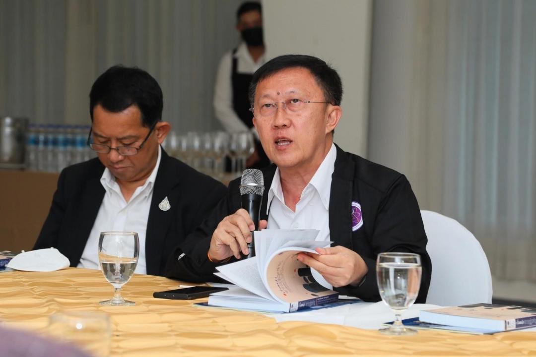 รองศาสตราจารย์ ดร.ณฐพงศ์ จิตรนิรัตน์ รักษาการแทนอธิการบดีมหาวิทยาลัยทักษิณ พร้อมทีมผู้บริหารมหาวิทยาลัย เข้าร่วมประชุมหารือและรายงานสรุปแนวทางการขับเคลื่อนและสนับสนุน การดําเนินการตามยุทธศาสตร์เพื่อพัฒนาภาคใต้ กับศาสตราจารย์ (พิเศษ) ดร.เอนก เหล่าธรรมทัศน์ รัฐมนตรีว่าการกระทรวงการอุดมศึกษา วิทยาศาสตร์ วิจัยและนวัตกรรม เมื่อวันที่ 29 พฤศจิกายน 2565 ณ จังหวัดสุราษฎร์ธานี