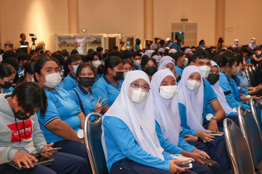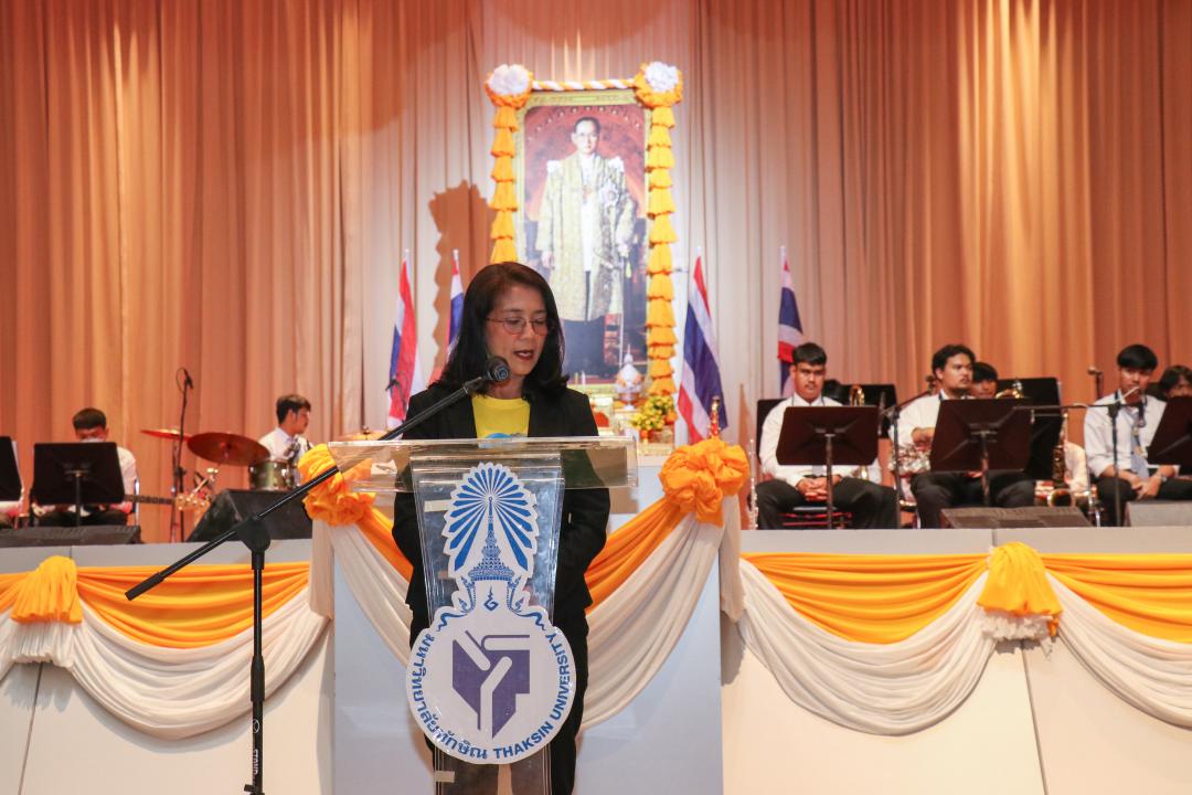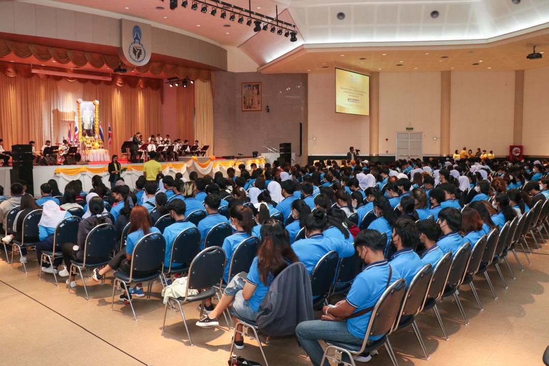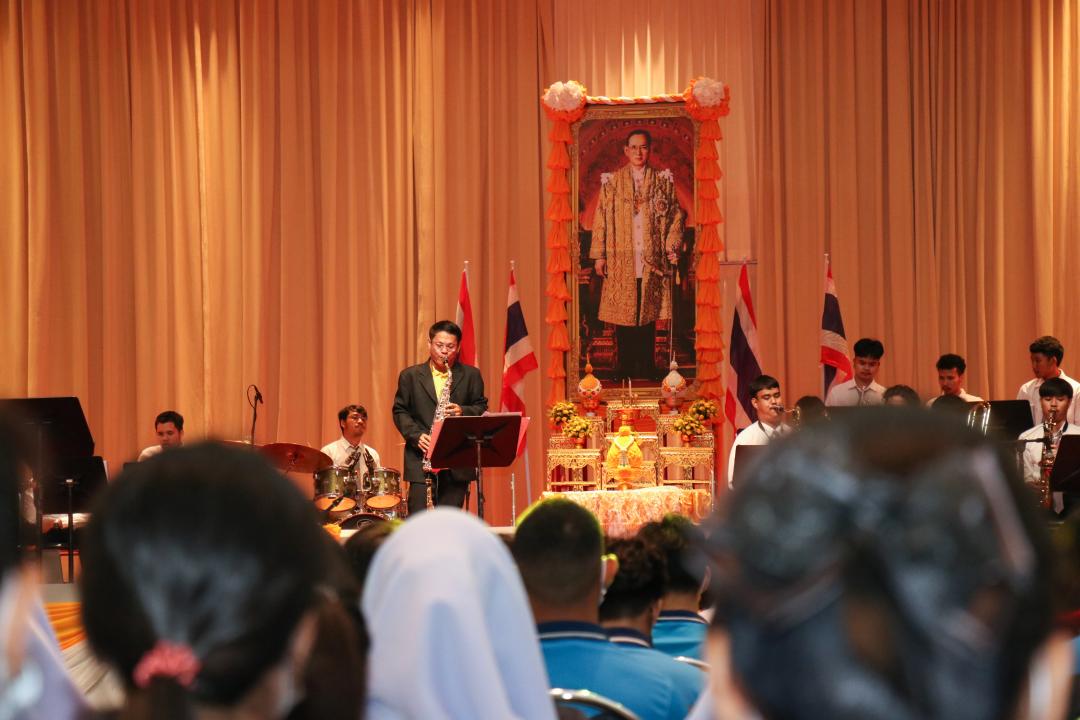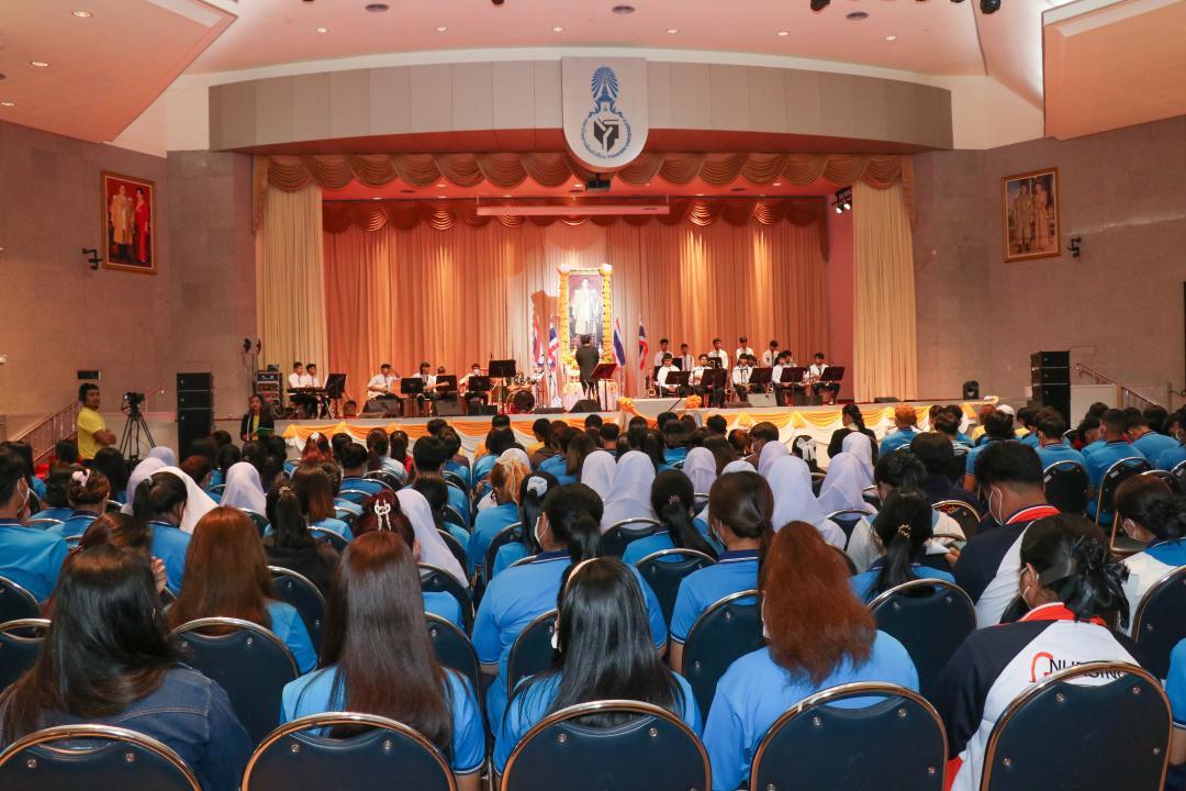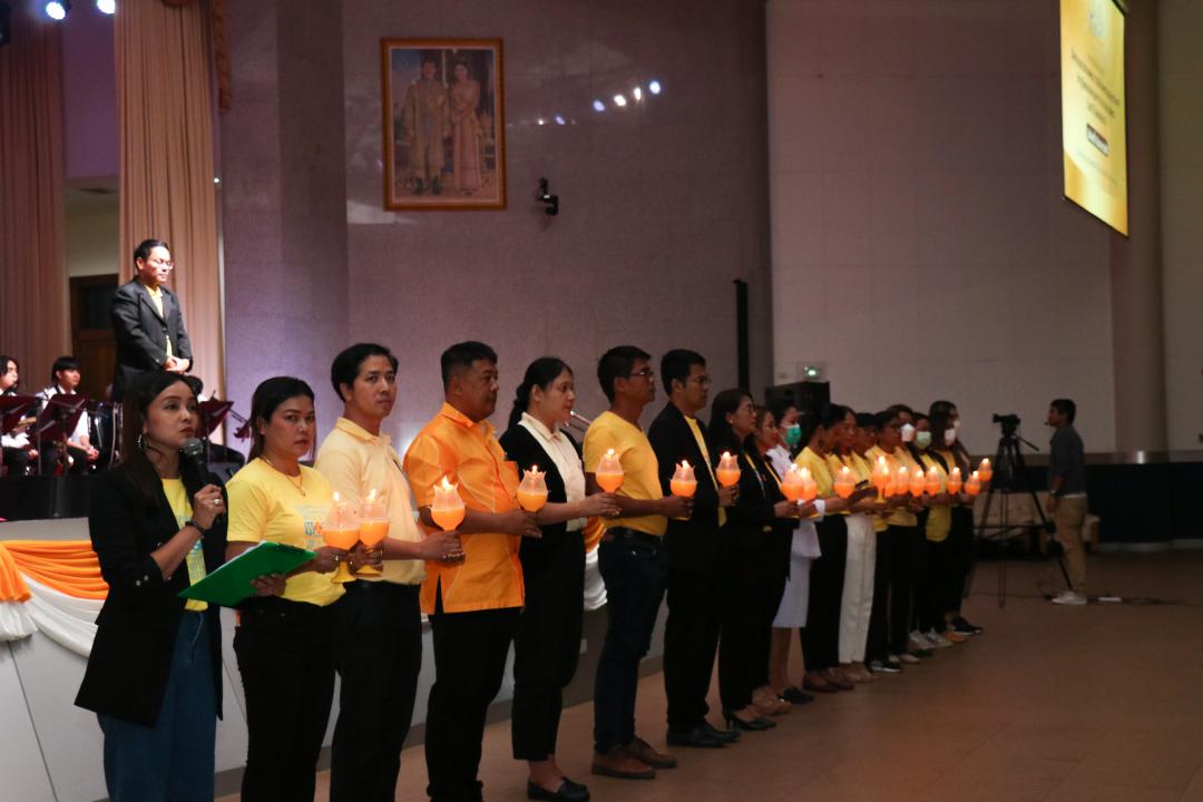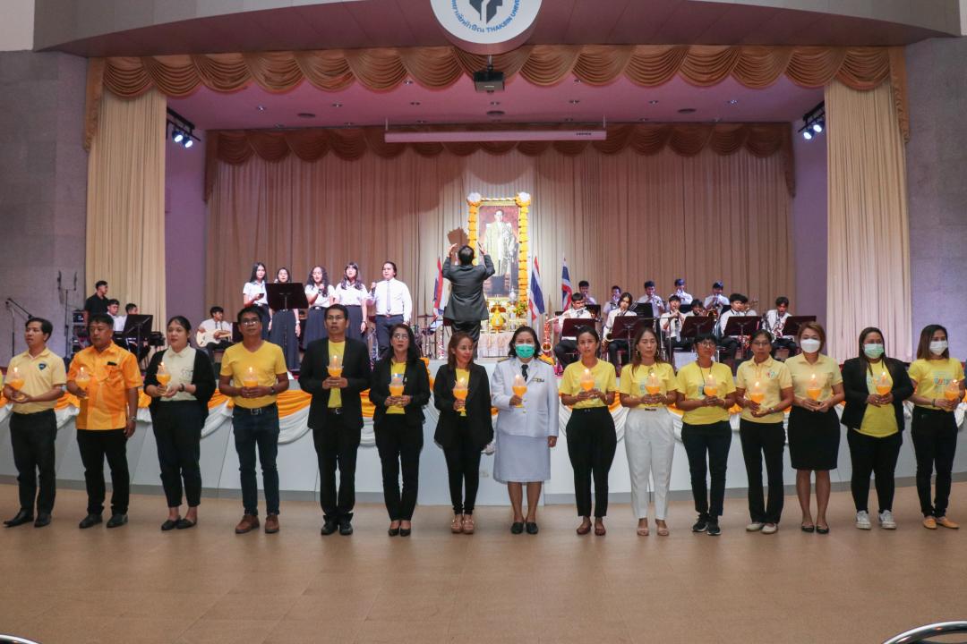 วันที่ 5 ธันวาคม 2565 เวลา17.00 น. สำนักส่งเสริมการบริการวิชาการและภูมิปัญญาชุมชน ในฐานะหน่วยปฏิบัติการ อว. ส่วนหน้า ประจำจังหวัดพัทลุง (Provincial Coordinator : PC) จัดงาน “H.M.Song อว. บรรเลงเพลงของพ่อ” เนื่องในวันคล้ายวันพระราชสมภพพระบาทสมเด็จพระบรมชนกาธิเบศร มหาภูมิพลอดุลยเดชมหาราช บรมนาถบพิตร ในโอกาสนี้อาจารย์ ดร.นิชากรณ์ พันธ์คง รักษาการแทนผู้อำนวยการสำนักส่งเสริมการบริการวิชาการและภูมิปัญญาชุมชน กล่าวรายงานความเป็นมาของงาน “H.M.Song อว. บรรเลงเพลงของพ่อ” โดยมี ผู้ช่วยศาสตราจารย์ ดร.ธัญญา พันธุ์ฤทธิ์ดำ รักษาการแทนรองอธิการบดีฝ่ายพัฒนาระบบนิเวศและโครงสร้างพื้นฐาน พัทลุง กล่าวเปิดงาน ซึ่งมีผู้บริหาร บุคลากร และนิสิต จำนวน 450 คน เข้าร่วมรับชมการแสดงดนตรีเฉลิมพระเกียรติพระบาทสมเด็จพระบรมชนกาธิเบศรมหาภูมิพลอดุลยเดชมหาราช บรมนาถบพิตร ซึ่งขับร้องและบรรเลงเพลงพระราชนิพนธ์ 16 บทเพลงของพ่อ โดยคณะศิลปกรรมศาสตร์ มหาวิทยาลัยทักษิณ จากนั้นผู้บริหารและบุคลากรร่วมร้องเพลงสรรเสริญพระบารมี และจุดเทียนน้อมรำลึกในพระมหากรุณาธิคุณอันหาที่สุดมิได้