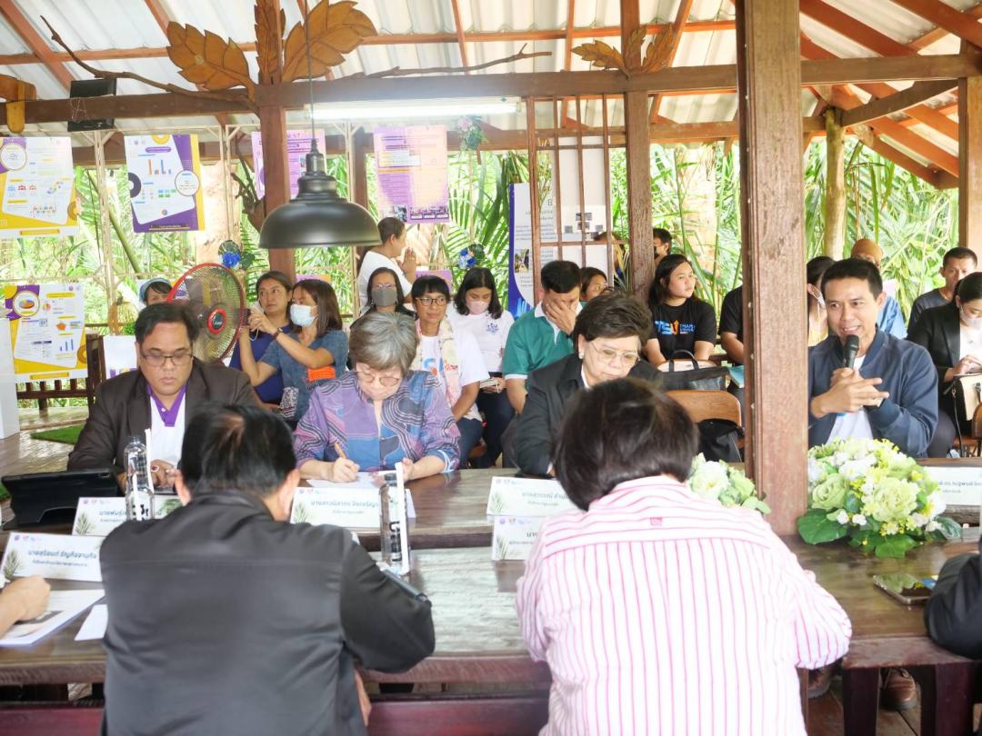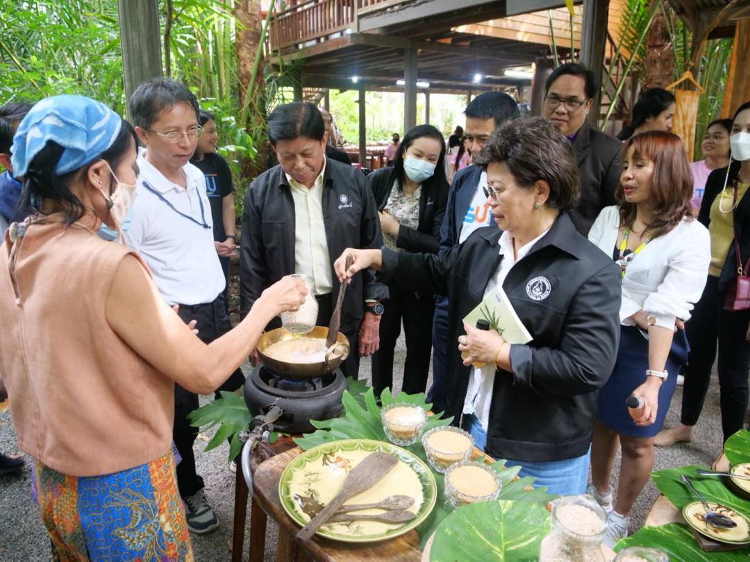 พร้อมคณะผู้บริหารจากสภาพัฒน์ คุณสุวรรณี คำมั่น คุณนิสากร จึงเจริญธรรม ที่ปรึกษารัฐมนตรี และผู้บริหารจากกระทรวง อว. เครือข่ายชุมชนตำบลควนขนุน นวัตกรชุมชน ในการลงพื้นที่ติดตามความก้าวหน้าและถอดบทเรียนจากโครงการสำคัญที่ขับเคลื่อนเศรษฐกิจฐานรากในระดับพื้นที่ ครั้งที่ 5 ในโครงการยกระดับเศรษฐกิจและสังคมรายตำบลแบบบูรณาการ และโครงการขับเคลื่อนเศรษฐกิจและสังคมฐานรากหลังโควิดด้วยเศรษฐกิจ BCG ภายใต้การดำเนินงานของมหาวิทยาลัยทักษิณ วิทยาเขตพัทลุง ณ พื้นที่ตำบลควนขนุน อำเภอควนขนุน จังหวัดพัทลุง