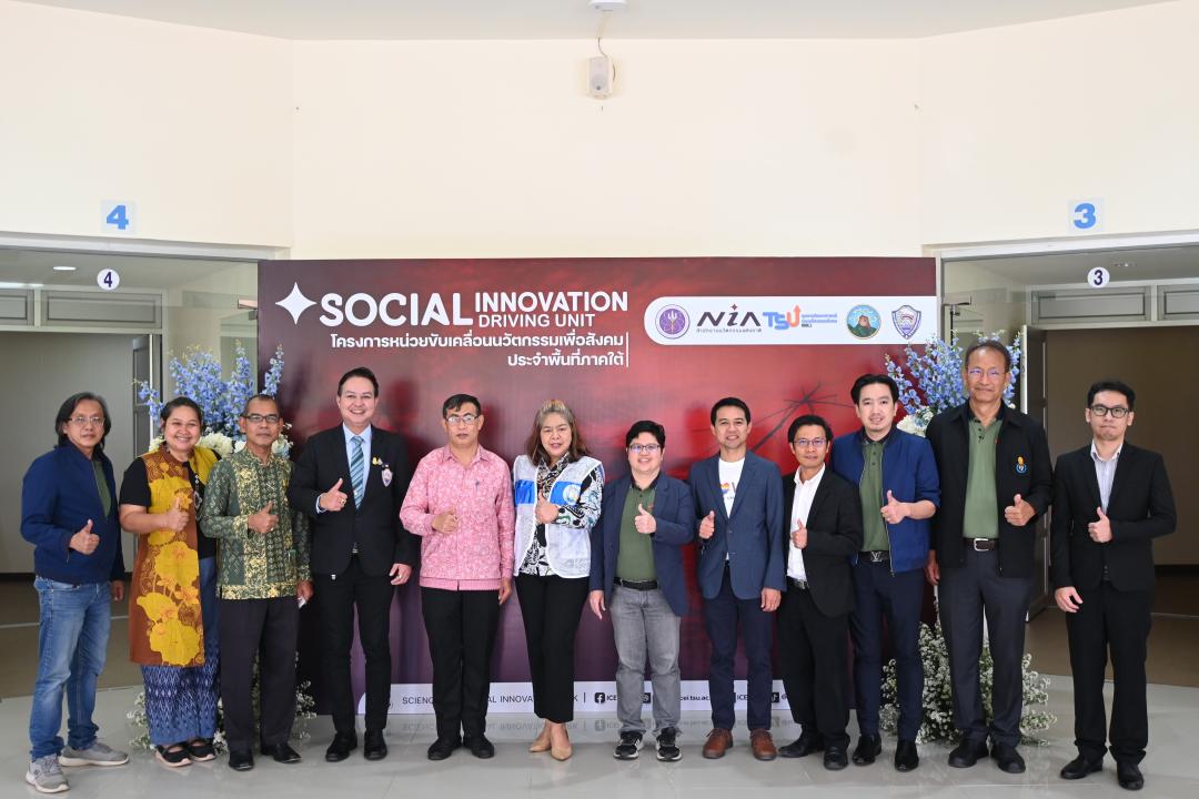 รองศาสตราจารย์ ดร.ณฐพงศ์ จิตรนิรัตน์ อธิการบดีมหาวิทยาลัยทักษิณ กล่าวว่า มหาวิทยาลัยทักษิณให้ความสำคัญต่อประเด็นการพัฒนาทางสังคม และธุรกิจสังคม (social business) ที่สร้างความสามารถทางนวัตกรรมของสังคมลดความเหลื่อมล้ำ ซึ่งจะครอบคลุมทั้งการสร้างธุรกิจนวัตกรรม และการสร้างเครือข่ายนวัตกรรมเชิงสังคม โดยมุ่งส่งเสริมและสนับสนุนให้เกิดการให้ประโยชน์หรือสาธิตนำร่องผลิตภัณฑ์ หรือกระบวนการที่เพิ่มมูลค่าเพิ่มศักยภาพและขีดความสามารถในการแข่งขันของชุมชน และยกระดับคุณภาพชีวิตของประชาชนให้มีความทั่วถึงและเท่าเทียมกันมากขึ้นในประเด็นนวัตกรรมเชิงสังคม 9 ด้าน คือ 1) ด้านการอนุรักษ์สิ่งแวดล้อม 2) ด้านความเชื่อมโยงระหว่าง อาหาร น้ำ และพลังงาน 3) ด้านภาครัฐและการศึกษา 4) ด้านการเงิน การจ้างงาน และสวัสดิการสังคม 5) ด้านเกษตรกรรมยั่งยืน 6) ด้านความเป็นเมือง 7) ด้านสุขภาพ ด้านการท่องเที่ยวและวัฒนธรรม และ 9) ด้านการจัดการภัยพิบัติ นอกจากนี้ ยังเป็นการสร้างและขยายเครือข่ายความร่วมมือในการขับเคลื่อนนวัตกรรมเพื่อสังคม และเครือข่ายนวัตกรรมเพื่อสังคมทั้งภายในและภายนอกมหาวิทยาลัยทักษิณ ให้สามารถทำงานเชิงบูรณาการ แบ่งปันองค์ความรู้ วิเคราะห์มิติปัญหาสังคมในพื้นที่ และสร้างระบบนิเวศนวัตกรรมที่เอื้อต่อการเติบโตของนวัตกรรมอย่างยั่งยืน และสร้างผลกระทบเชิงสังคมได้อย่างเป็นรูปธรรม ทั้งนี้มหาวิทยาลัยทักษิณให้ความสำคัญในการส่งเสริม และสนับสนุนผู้ประกอบการผ่านการบ่มเพาะ การถ่ายทอดการวิจัยเทคโนโลยีและนวัตกรรม การเชื่อมโยงและสร้างเครือข่ายภายในประเทศและต่างประเทศ และการผลักดันเข้าสู่การแข่งขันทางธุรกิจ สอดคล้องกับโยบายมหาวิทยาลัยทักษิณ ของการเป็นมหาวิทยาลัยกลุ่ม 2 คือ กลุ่มพัฒนาและกลุ่มส่งเสริมเทคโนโลยีและการพัฒนานวัตกรรม เป้าหมายที่สำคัญคือการพัฒนากำลังคนเพื่อไปเป็นส่วนหนึ่งของการสร้างขีดความสามารถในการแข่งขันของประเทศและการสร้างกำลังคนเพื่อให้ไปตอบสนองเชิงยุทธศาสตร์และนโยบายการพัฒนาประเทศในระบบเศรษฐกิจสร้างสรรค์ ซึ่งสำนักบ่มเพาะวิชาการเพื่อวิสาหกิจในชุมชน ที่กำลังเปลี่ยนเป็นอุทยานวิทยาศาสตร์และนวัตกรรมสังคม เป็นหน่วยงานที่สำคัญในในการดำเนินงานดังกล่าว โดยให้ความสำคัญในการสนับสนุนให้ทุกส่วนงานช่วยพัฒนาพื้นที่ภาคใต้ โดยเฉพาะให้ความร่วมมือกับเครือข่ายทุกภาคส่วนที่จะขับเคลื่อนการพัฒนาและยกระดับเศรษฐกิจฐานราก และภาคเอกชนให้เติบโตอย่างก้าวกระโดดด้วยวิทยาศาสตร์ วิจัย และนวัตกรรม