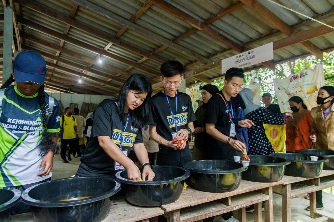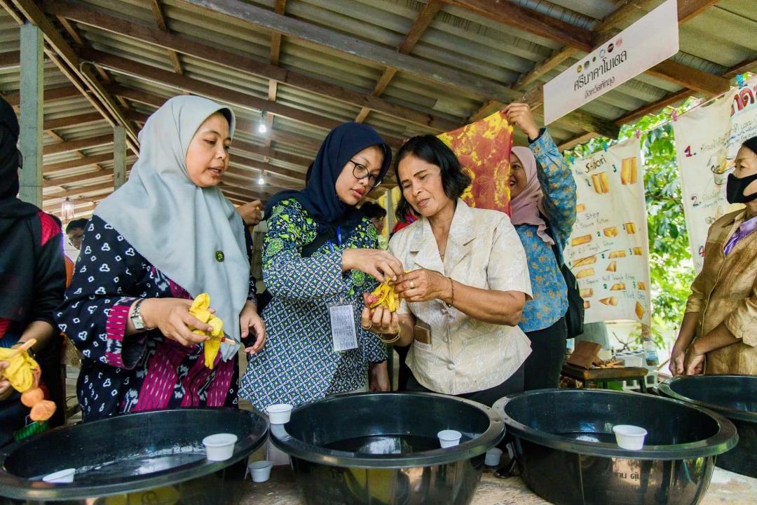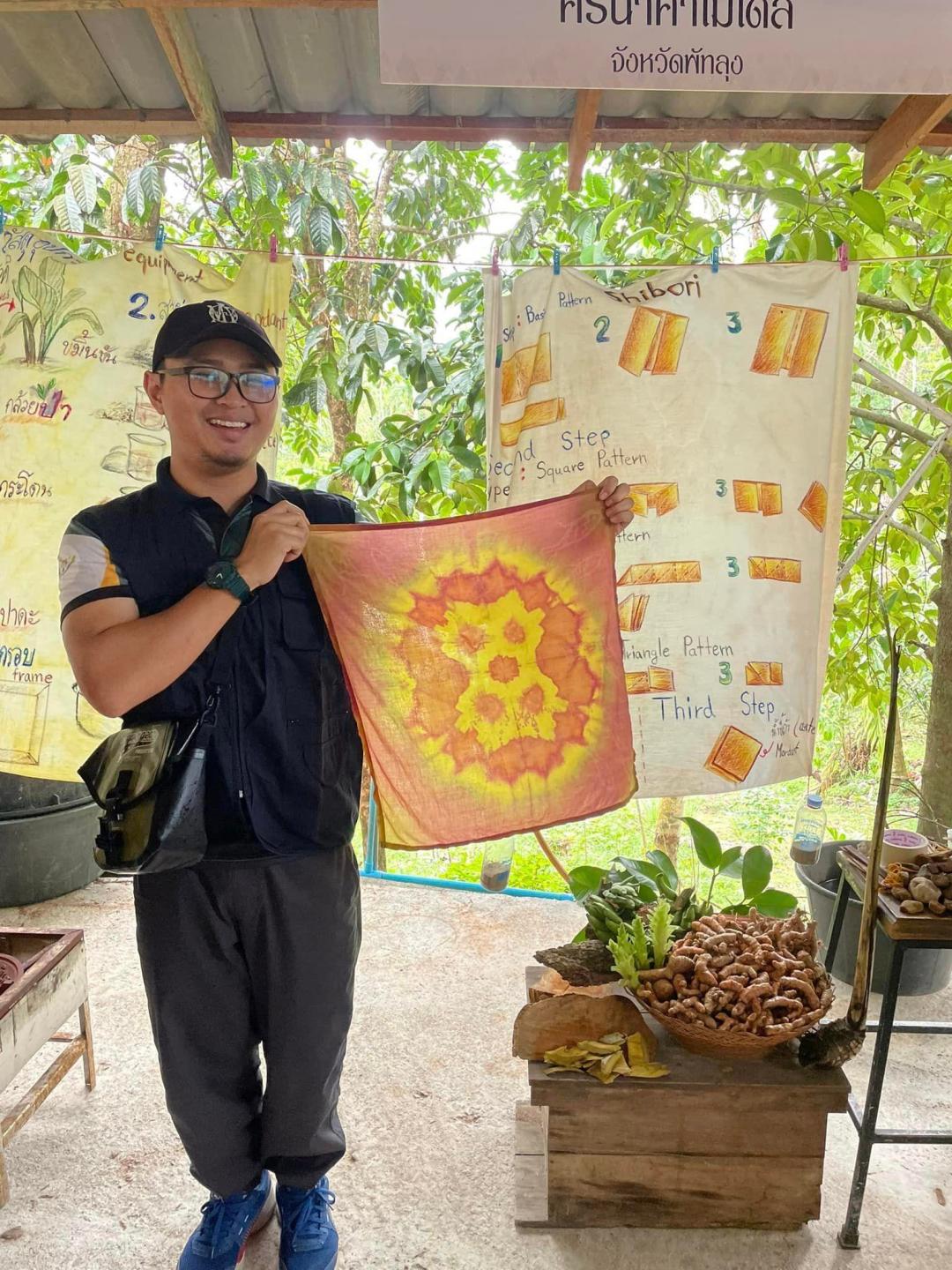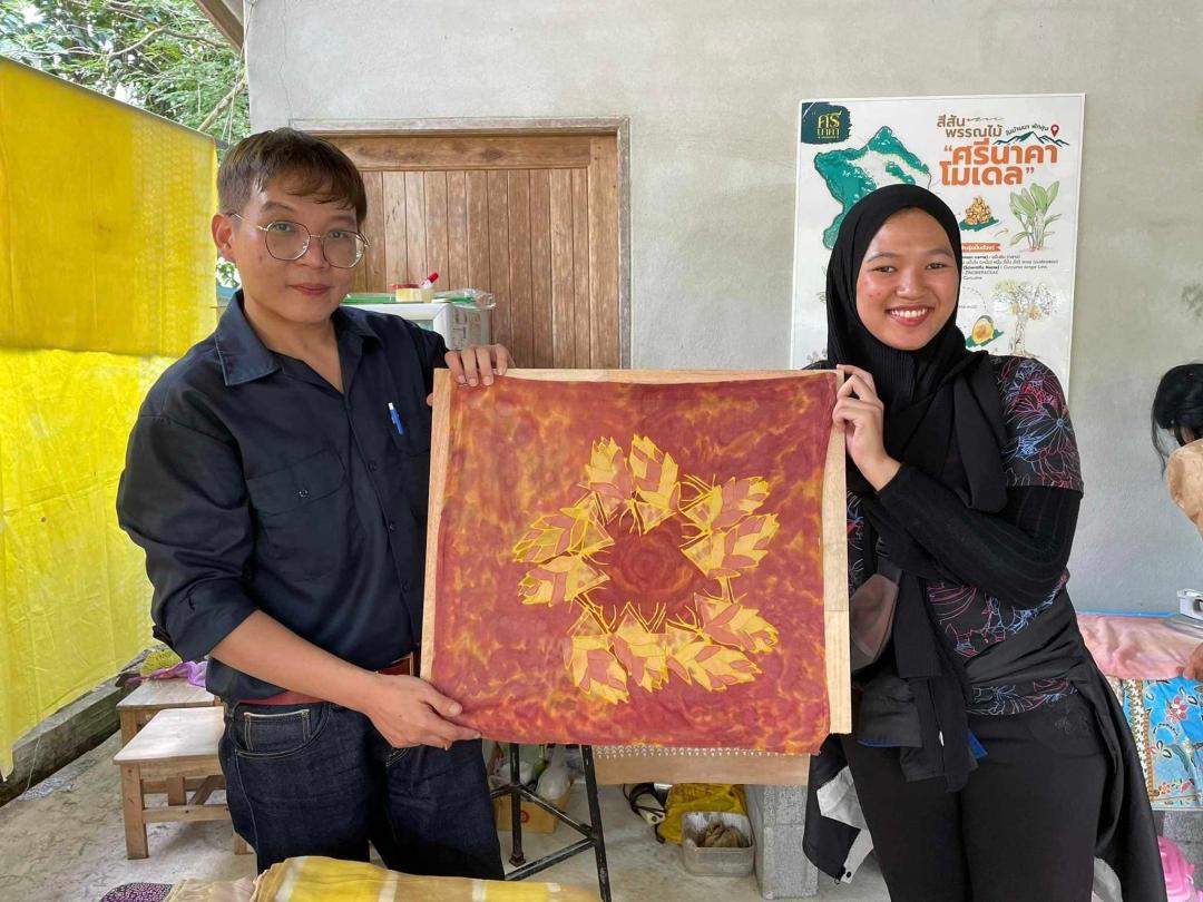 อาจารย์และนักศึกษาจากโครงการ UniGo (Unimap Global Outreach) & โครงการ TSU international Volunteer Community Services 2023 ภายใต้ความร่วมมือ 3 ประเทศ : 6 มหาวิทยาลัย ร่วมทำกิจกรรมการมัดย้อมด้วยสีธรรมชาติ ณ กลุ่มย้อมผ้าพิมพ์ลายสีธรรมชาติ “ศรีนาคาโมเดล” ตำบลบ้าน อำเภอศรีนครินทร์ จังหวัดพัทลุง