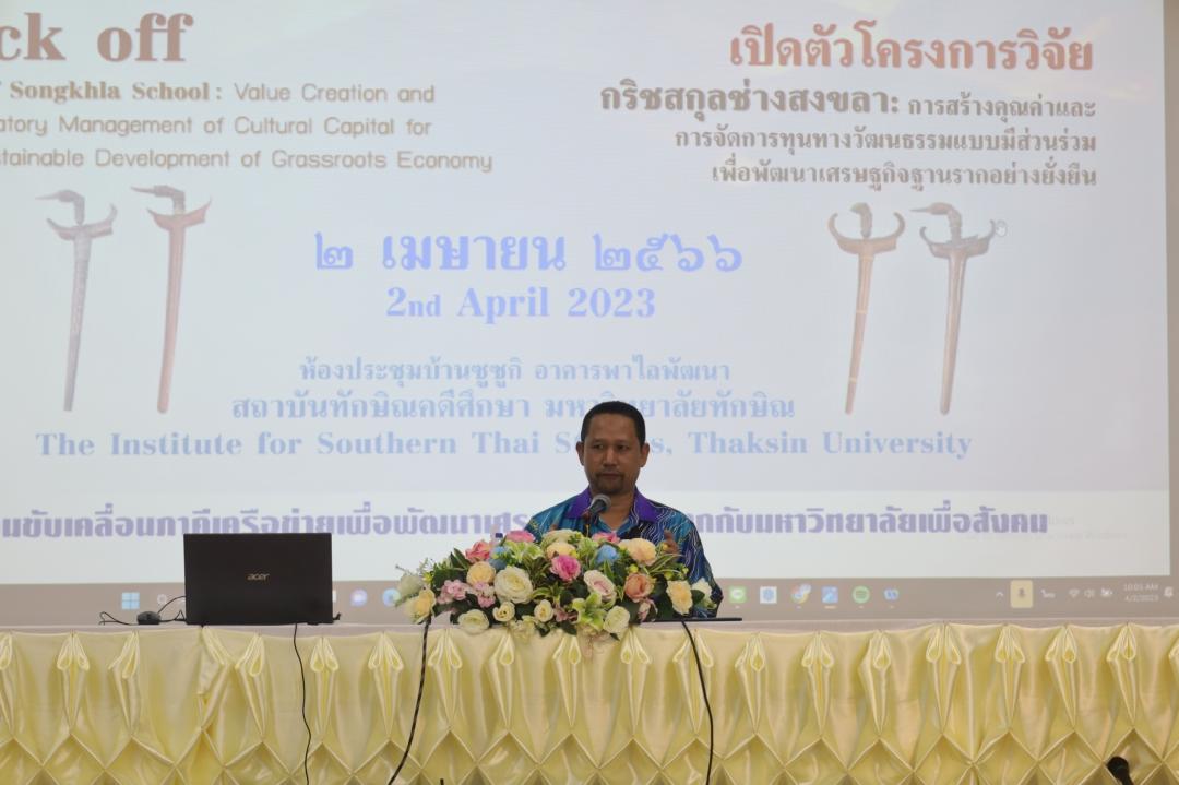 เมื่อวันที่ 2 เมษายน 2566 มหาวิทยาลัยทักษิณ เปิดตัวโครงการวิจัยเรื่อง "กริชสกุลช่างสงขลา : การสร้างคุณค่าและการจัดการทุนทางวัฒนธรรมแบบมีส่วนร่วมเพื่อพัฒนาเศรษฐกิจฐานรากอย่างยั่งยืน" ณ ห้องประชุมบ้านชูซูกิ อาคารพาไลพัฒนา สถาบันทักษิณคดีศึกษา โดยมี รองศาสตราจารย์ ดร.ณฐพงศ์ จิตรนิรัตน์ อธิการบดี มหาวิทยาลัยทักษิณ เป็นประธานเปิดงาน และ รองศาสตราจารย์ ดร.สมัคร แก้วสุกแสง รองอธิการบดีฝ่ายวิจัยและนวัตกรรม กล่าวต้อนรับและรายงานการจัดงานเปิดตัวโครงการวิจัยในครั้งนี้