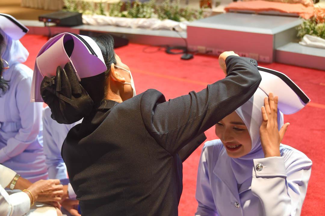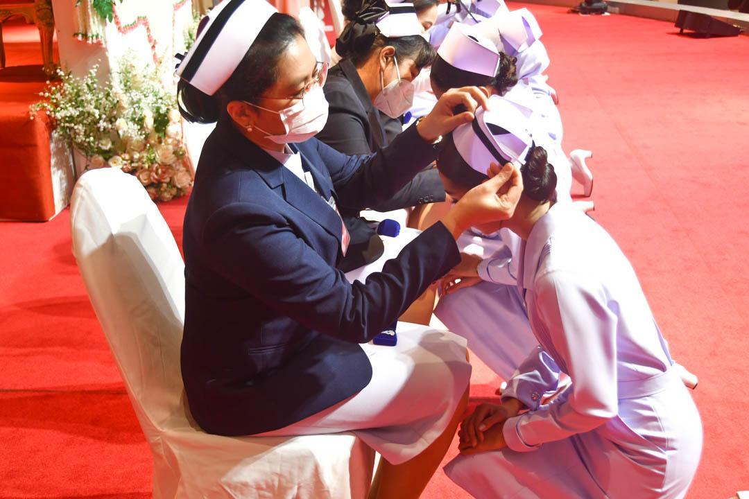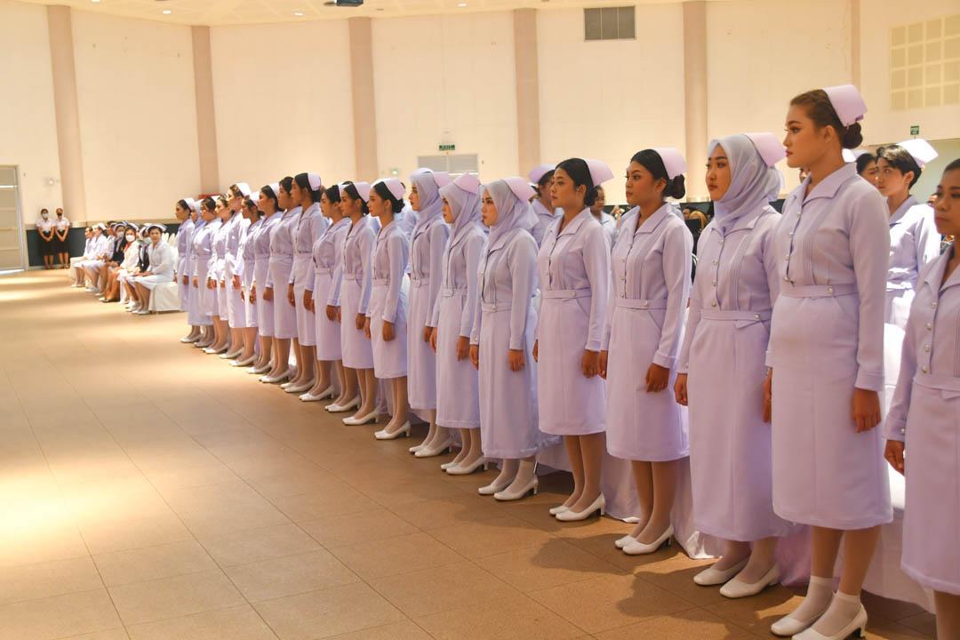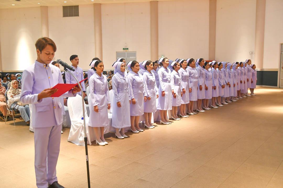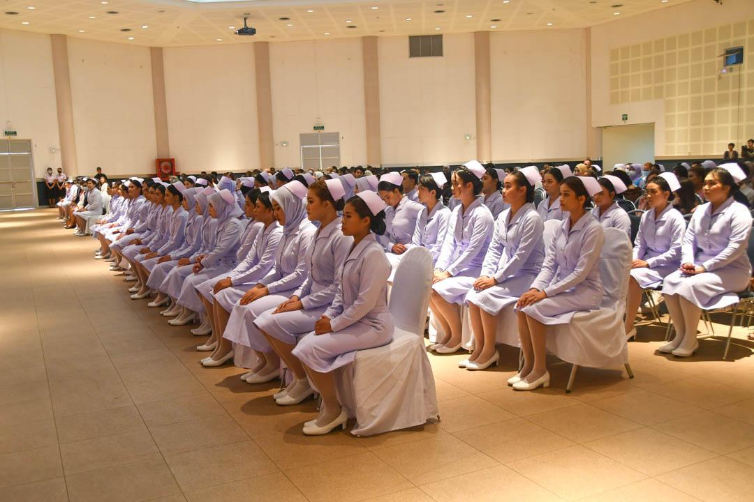 โดยบัณฑิตพยาบาลศาสตร์ ที่เข้ารับแถบหมวกและเข็มสถาบัน จำนวน 49 คน ในครั้งนี้ ทุกคนได้ผ่านการศึกษาทั้งรายวิชาภาคทฤษฎีและภาคปฏิบัติอย่างครบถ้วน ทั้งหมวดวิชาศึกษาทั่วไป หมวดวิชาพื้นฐานวิชาชีพ และหมวดวิชาชีพ รวม 138 หน่วยกิต ซึ่งในกระบวนการของการศึกษาบัณฑิตพยาบาล ทุกคนได้เรียนรู้และได้รับการอบรมบ่มเพาะจากคณาจารย์ของคณะ คณาจารย์ของแหล่งฝึก รวมถึงผู้ป่วย ครอบครัว และชุมชนในแหล่งฝึกปฏิบัติ ส่งผลให้บัณฑิตของคณะพยาบาลศาสตร์ มีสมรรถนะในการปฏิบัติการพยาบาล มีคุณธรรมจริยธรรม รวมทั้งตระหนักถึงความรับผิดชอบของตนเอง ที่มีต่อประชนชนผู้ใช้บริการและสังคมโดยรวม ด้วยเหตุนี้บัณฑิตของ คณะพยาบาลศาสตร์ จึงเป็นผู้ที่มีคุณสมบัติและมีเกียรติควรแก่การสวมเครื่องแบบพยาบาลที่สมบูรณ์พร้อมด้วยแถบหมวกคณะพยาบาลศาสตร์จัดพิธีมอบแถบหมวกและเข็มสถาบันครั้งนี้ ขึ้นเพื่อประกาศเกียรติ และศักดิ์ศรี ของบัณฑิตผู้รับมอบแถบหมวกและเข็มสถาบัน
