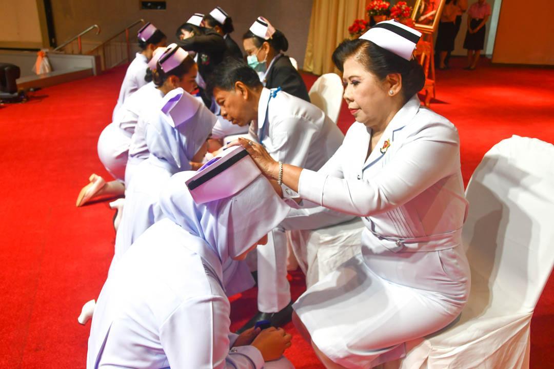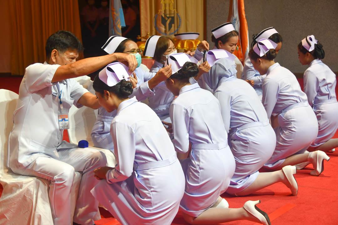 สำหรับพิธีมอบแถบหมวกและเข็มสถาบัน คณะพยาบาลศาสตร์ได้จัดขึ้น เพื่อเป็นสิ่งที่เตือนให้บัณฑิตพยาบาลได้ตระหนักว่าทุกคนต้องมีความรับผิดชอบต่อวิชาชีพการพยาบาล ปฏิบัติหน้าที่เพื่อประโยชน์ของผู้อื่นโดยยึดจรรยาบรรณวิชาชีพมีความรู้คู่คุณธรรมและจะต้องเป็นพยาบาลที่ดี ทั้งนี้เพื่อให้ทุกคนมีความภูมิใจในวิชาชีพ แม้ว่าวิชาชีพพยาบาลจะเป็นภาระที่หนักและความรับผิดชอบสูง แต่เป็นภาระที่มีเกียรติและทรงคุณค่า และเป็นการสืบสานพระราชปณิฏานของสมเด็จพระศรีนครินทราบรมราชชนนี