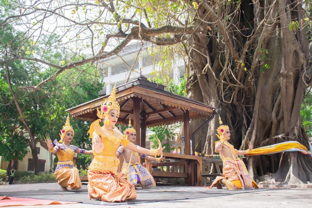 สำหรับพิธีบวงสรวงพระภูมิเจ้าที่และเซ่นไหว้ปู่เลียบ เพื่อความเป็นศิริมงคลภายในมหาวิทยาลัย ภายในพิธี มีการผูกผ้า 7 สี ต้นเลียบ การเปลี่ยนผ้าห่มพระพุทธรูป / สรงน้ำพระพุทธรูป พิธีบวงสรวงเซ่นไหว้ปู่เลียบ (โดยเชิญผู้ประกอบพิธีพราหมณ์จากสำนักงานวัฒนธรรมจังหวัดสงขลาเป็นผู้ทำพิธีบวงสรวง) หลังจากนั้นพระสงฆ์ 5 รูป เจริญพระพุทธมนต์ สวดมนต์ไหว้พระ