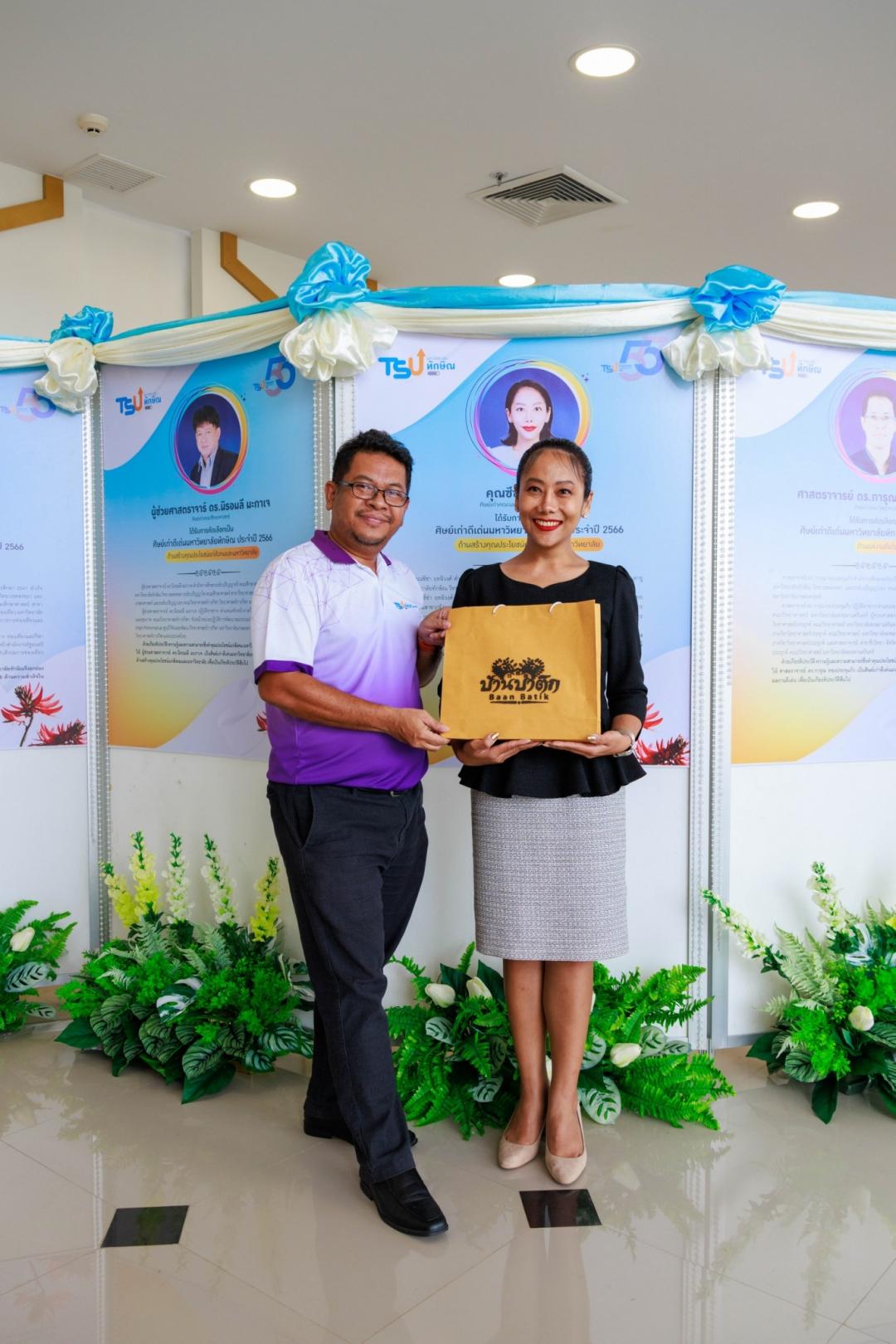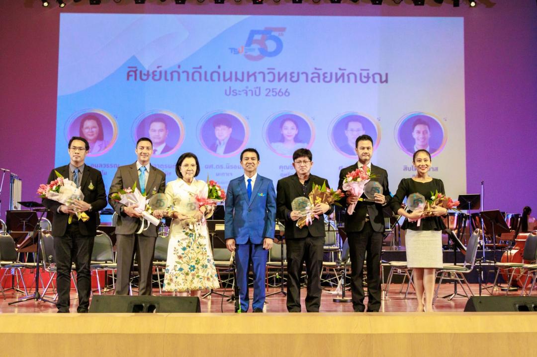 สำหรับปีนี้ มหาวิทยาลัยทักษิณ ได้พิจารณามอบโล่รางวัลแก่ศิษย์เก่าดีเด่น จำนวน 6 ท่าน จากการคัดเลือกโดยคณะกรรมการพิจารณาผลการคัดเลือกศิษย์เก่า ประจำปี พ.ศ.2566 โดยผู้ช่วยศาสตราจารย์ ดร.สิรยา สิทธิสาร รองอธิการบดีฝ่ายกิจการนิสิตและพันธกิจสัมพันธ์ เป็นประธานตัดสิน ซึ่งมีศิษย์เก่าได้รับรางวัล 6 ราย ดังนี้