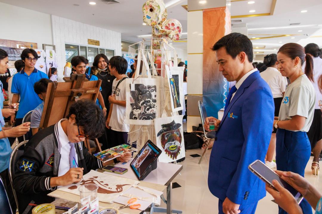 และมีการออกร้านแสดงผลงานผลงานด้านการเรียนการสอนหลักสูตรทัศนศิลป์ และหลักสูตรศิลปะการออกแบบ รวมทั้งการจัดแสดงผลงานด้านศิลปกรรม ของนิสิต คณะศิลปกรรมศาสตร์ มหาวิทยาลัยทักษิณ. และชมนิทรรศการของนิสิตและผู้ประกอบการจากมหาวิทยาลัยทักษิณ ประกอบด้วย บูธ R2m 4 บูธ บูธบริษัทมัสเซิลเชฟ ประเทศไทย จำกัด บูธบริษัทปาล์มแพคเกจจิ้ง จำกัด บูธ ELP โดยการสนับสนุนของอุทยานวิทยาศาสตร์และนวัตกรรมสังคม มหาวิทยาลัยทักษิณ