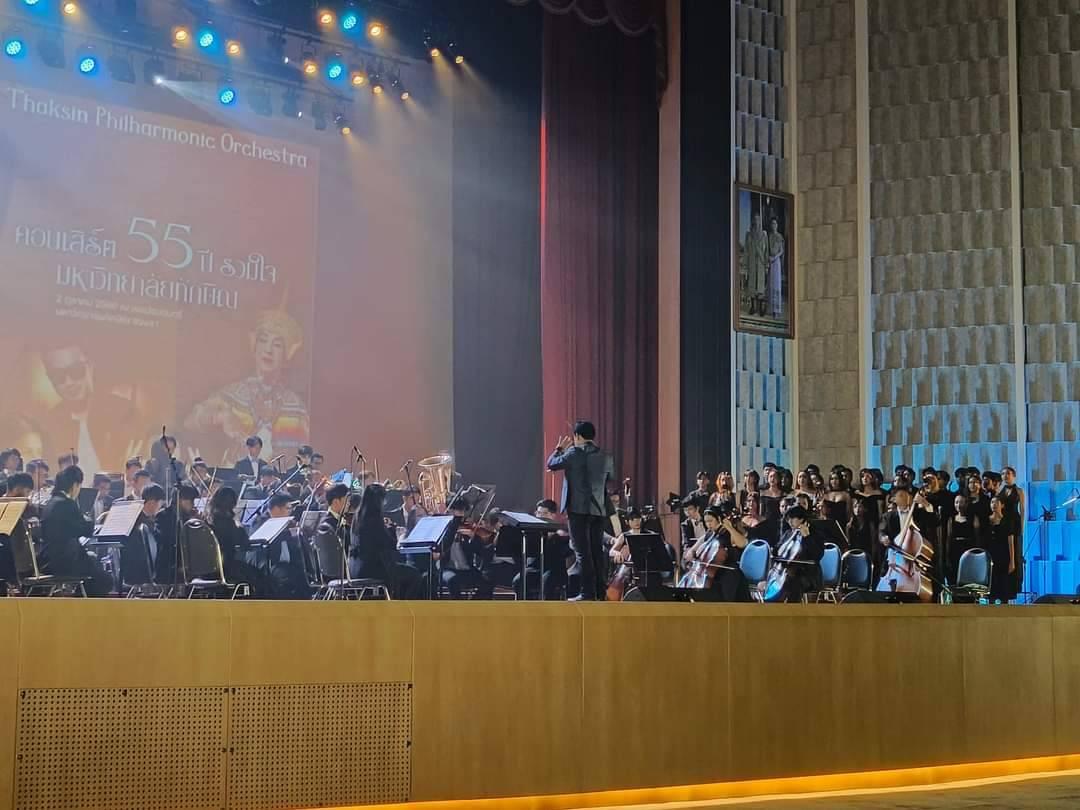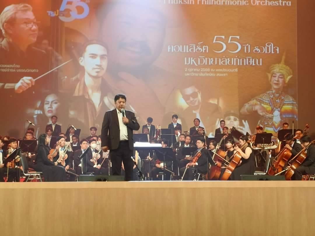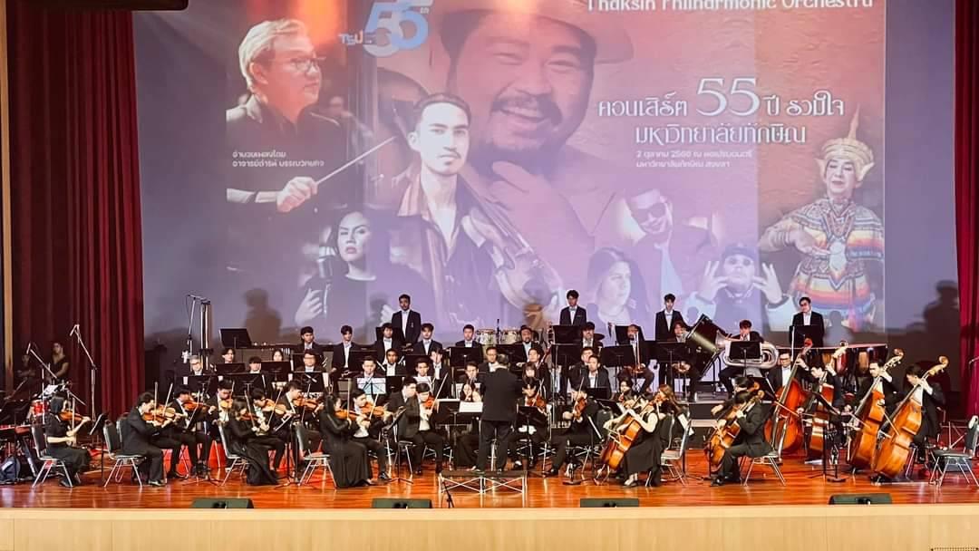 การแสดงของ วง Thaksin Philharmonic Orchestra ในครั้งนี้ได้รับเกียรติจากอาจารย์ดำริห์ บรรณวิทยกิจ ศิลปินรางวัลศิลปินศิลปาธร ประจำปี 2566 สาขาดนตรี มาเป็นผู้อำนวยเพลงได้อย่างน่าประทับใจ อีกทั้งยังมีการแสดงชุดพิเศษอื่นๆ จากคณะศิลปกรรมศาสตร์ คอนเสิร์ต 55 ปีรวมใจ มหาวิทยาลัยทักษิณในครั้งนี้ รายได้หลังหักค่าใช่จ่าย มอบเป็นทุนการศึกษาแก่นิสิตมหาวิทยาลัยทักษิณ เพื่อนำไปพัฒนาการเรียนการสอนและคุณภาพทางการศึกษาต่อไป ซึ่งจัดขึ้นเมื่อวันที่ 2 ตุลาคม 2566 ที่ผ่านมา ณ หอเปรมดนตรี มหาวิทยาลัยทักษิณ วิทยาเขตสงขลา