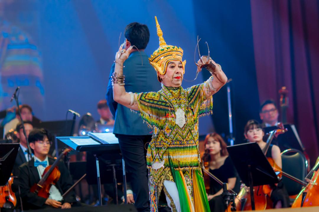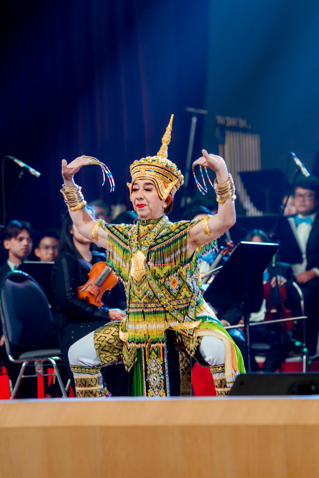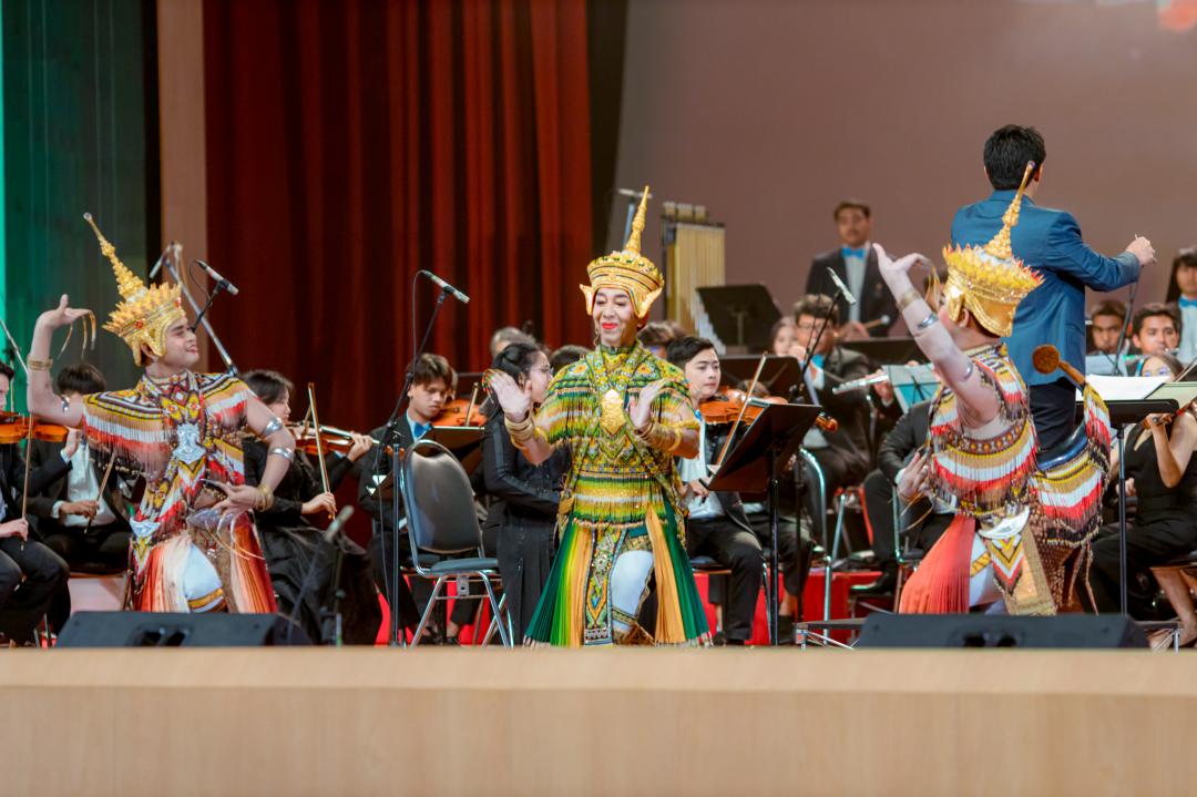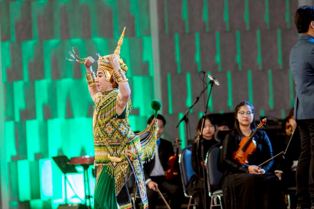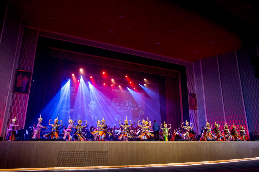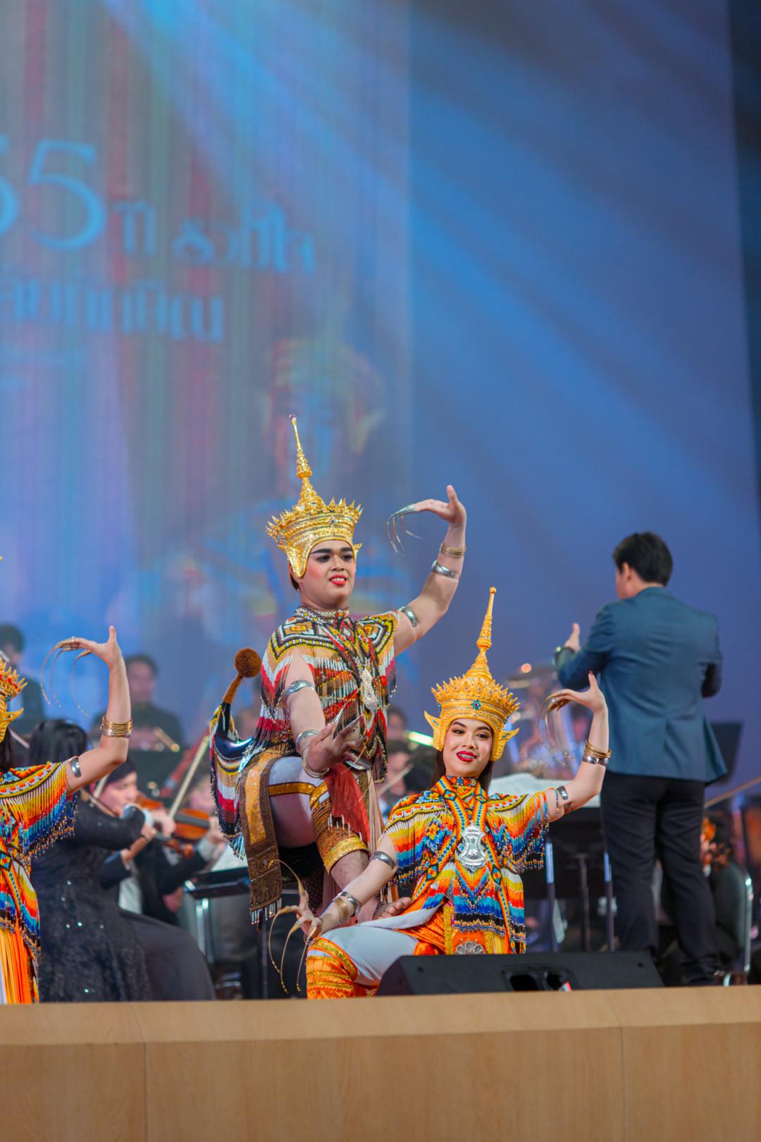 การแสดงชุด โนราประสมท่า 55 รวมใจ นำแสดงโดย ผู้ช่วยศาสตราจารย์ธรรมนิตย์ นิคมรัตน์ ศิลปินแห่งชาติ สาขาศิลปะการแสดง (โนรา) พุทธศักราช 2564 อาจารย์ประจำสาขาวิชาศิลปะการแสดง และนิสิตสาขาวิชาศิลปะการแสดง คณะศิลปกรรมศาสตร์ มหาวิทยาลัยทักษิณ กับดนตรีคลาสสิคเครื่องดนตรีสากล วง Thaksin Philharmonic Orchestra การแสดงชุดนี้แสดงให้เห็นถึงการเชื่อมต่อและการปฏิสัมพันธ์กันระหว่างความเป็นโลกาภิวัตน์และความเป็นท้องถิ่น ผ่านการสร้างสรรค์ การแสดงท่วงท่าโนรา ประกอบกับเสียงจากเครื่องดนตรีพื้นบ้านสอดประสานกับเสียงจากเครื่องดนตรีสากล สะท้อนให้เห็นถึงความเป็น The University of Glocalization ซึ่งเป็นพื้นที่ที่จะทำให้เกิดการสร้างสรรค์ การแสวงหาทางเลือกใหม่ของการพัฒนาสู่การนวัตกรรมสังคม