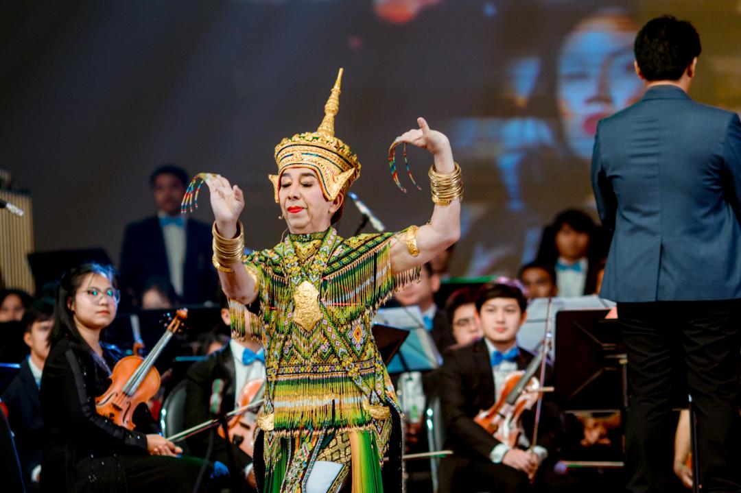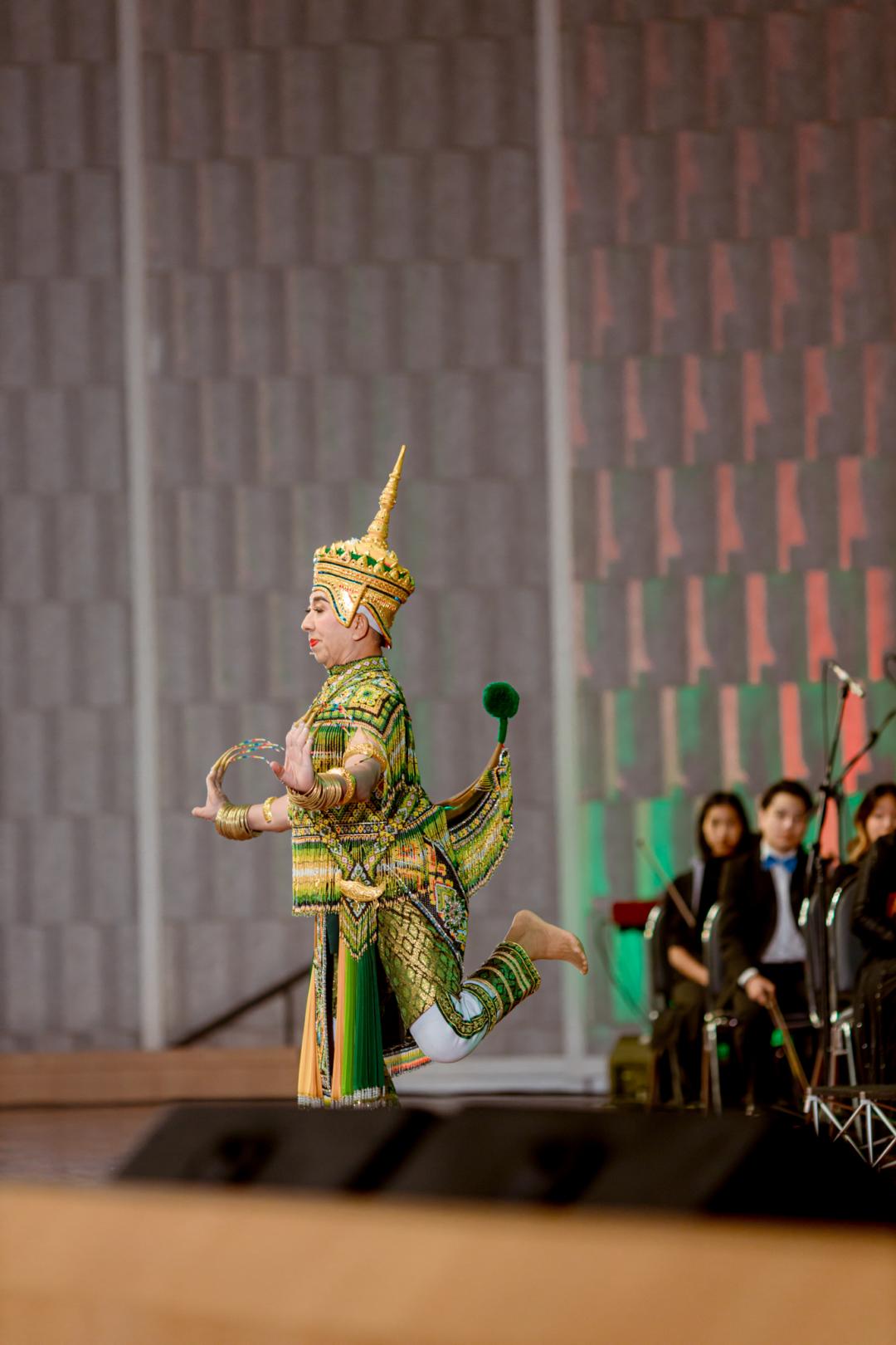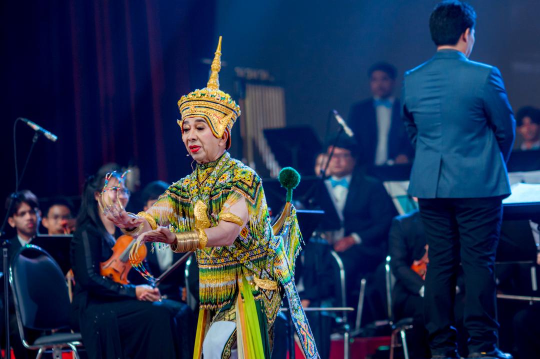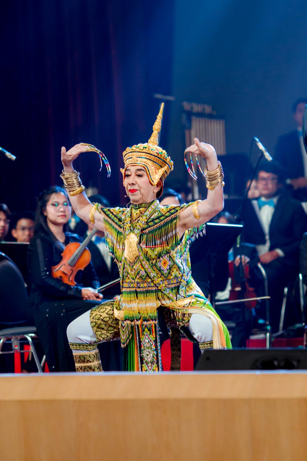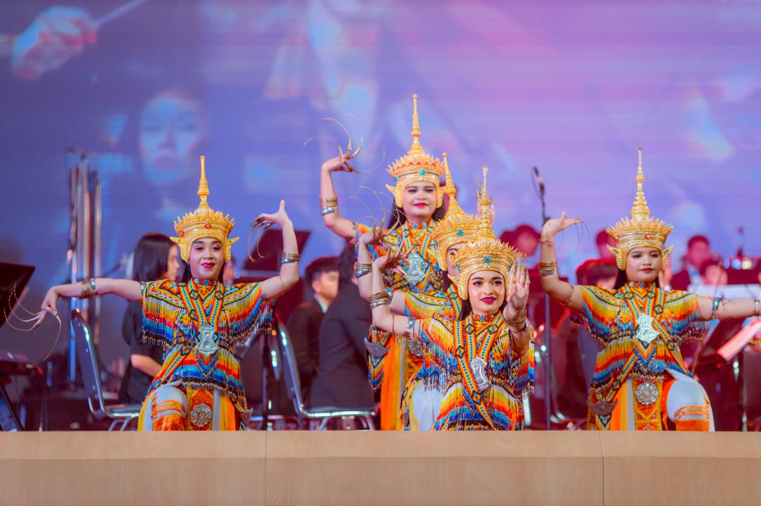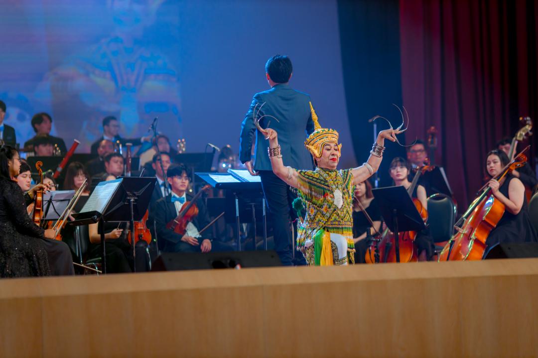 การแสดงชุด โนราประสมท่า 55 รวมใจ นำแสดงโดย ผู้ช่วยศาสตราจารย์ธรรมนิตย์ นิคมรัตน์ ศิลปินแห่งชาติ สาขาศิลปะการแสดง (โนรา) พุทธศักราช 2564 อาจารย์ประจำสาขาวิชาศิลปะการแสดง และนิสิตสาขาวิชาศิลปะการแสดง คณะศิลปกรรมศาสตร์ มหาวิทยาลัยทักษิณ กับดนตรีคลาสสิคเครื่องดนตรีสากล วง Thaksin Philharmonic Orchestra การแสดงชุดนี้แสดงให้เห็นถึงการเชื่อมต่อและการปฏิสัมพันธ์กันระหว่างความเป็นโลกาภิวัตน์และความเป็นท้องถิ่น ผ่านการสร้างสรรค์ การแสดงท่วงท่าโนรา ประกอบกับเสียงจากเครื่องดนตรีพื้นบ้านสอดประสานกับเสียงจากเครื่องดนตรีสากล สะท้อนให้เห็นถึงความเป็น The University of Glocalization ซึ่งเป็นพื้นที่ที่จะทำให้เกิดการสร้างสรรค์ การแสวงหาทางเลือกใหม่ของการพัฒนาสู่การนวัตกรรมสังคม