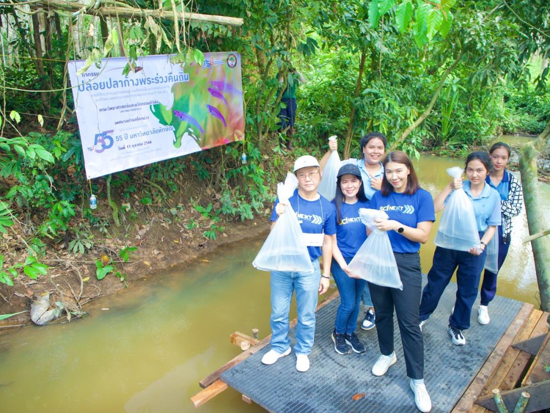 วันนี้ (11 ตุลาคม 2566) คณะวิทยาศาสตร์และนวัตกรรมดิจิทัล มหาวิทยาลัยทักษิณ นำโดย ผศ.ดร.นพมาศ ปักเข็ม คณบดีคณะวิทยาศาสตร์และนวัตกรรมดิจิทัล อ.อาจารี นาโค รองคณบดีฝ่ายวิชาการและดิจิทัลองค์กร ผศ.อานุช คีรีรัฐนิคม ผู้ช่วยคณบดีฝ่ายบริการวิชาการและการประกอบการ ผศ.ดร.สุภฎา คีรีรัฐนิคม สาขาวิชาวิทยาศาสตร์ชีวภาพและสิ่งแวดล้อม พร้อมนิสิตหลักสูตรวิทยาศาสตร์การประมงและทรัพยากรทางน้ำ ร่วมกับเทศบาลตำบลโคกม่วง นำโดย นายเจริญศักดิ์ ชูสง นายกเทศบาลตำบลโคกม่วง กำนัน ผู้ใหญ่บ้าน พร้อมชาวบ้าน ร่วมกันจัดกิจกรรม “การปล่อยปลาก้างพระร่วงคืนถิ่น” เนื่องในโอกาส ครบรอบวันสถาปนา 55 ปี มหาวิทยาลัยทักษิณ ณ พื้นที่หมู่ที่ 6 ต.โคกม่วง อ.เขาชัยสน จ.พัทลุง