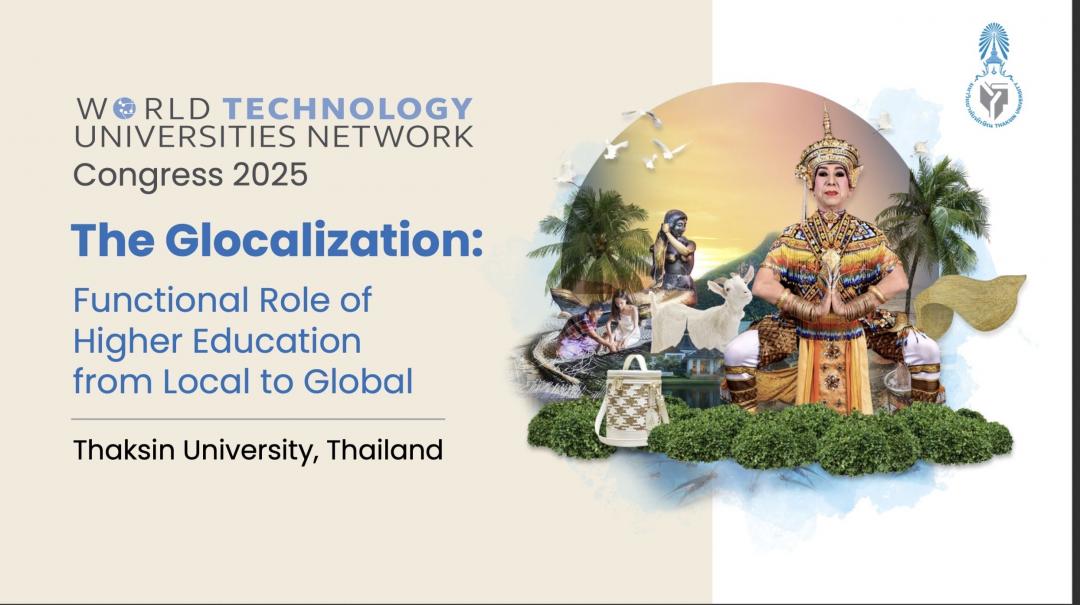ซึ่งการประชุม World Technology Universities Congress 2025 (WTUC 2025) ที่มีมหาวิทยาลัยทักษิณเป็นเจ้าภาพ จะถูกจัดขึ้น ณ มหาวิทยาลัยทักษิณ วิทยาเขตสงขลา โดยมีสมาชิกเครือข่ายมหาวิทยาลัยเทคโนโลยีจากทั่วโลก กว่า 50 คน เข้าร่วมประชุม