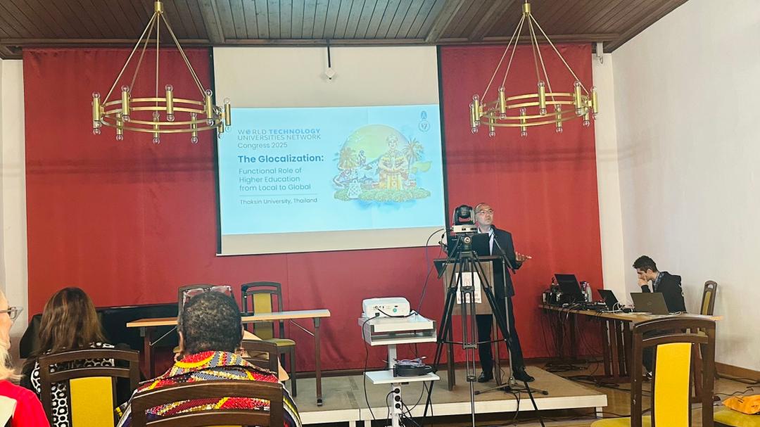 โดยในการนำเสนอศักยภาพเพื่อการเป็นเจ้าภาพจัดการประชุมครั้งถัดไป รองศาสตราจารย์ ดร.สมัคร แก้วสุกแสง รองอธิการฝ่ายวิจัยและนวัตกรรม มหาวิทยาลัยทักษิณ ได้นำเสนอแนวคิด The Glocalization : Functional Role of Higher Education from Local to Global การขับเคลื่อนนวัตกรรมสังคมเชิงพื้นที่สู่การสร้างอัตลักษณ์และการรับรู้ในระดับโลกหรือสากล เพื่อสร้างความเข้มแข็งทางเศรษฐกิจ สังคม วัฒนธรรม และสิ่งแวดล้อมในระดับชาติและนานาชาติ ของมหาวิทยาลัยทักษิณ จนได้รับการพิจารณาคัดเลือกให้เป็นเจ้าภาพในการจัดการประชุม World Technology Universities Congress 2025 (WTUC 2025)