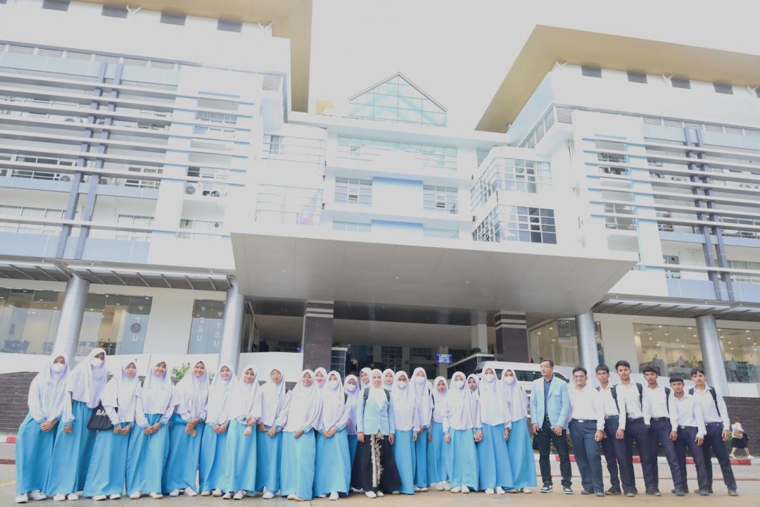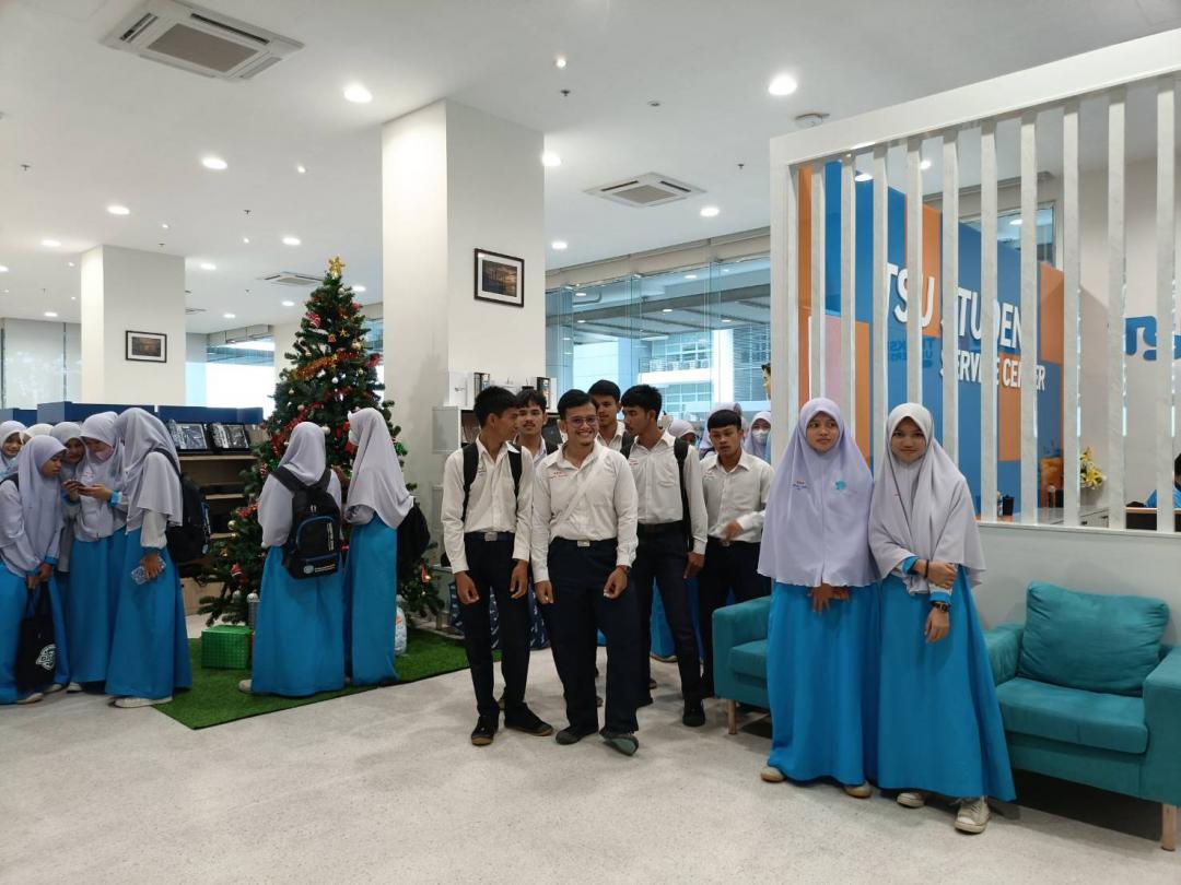 เมื่อวันที่ 22 พฤศจิกายน 2566 ผู้ช่วยศาสตราจารย์ ดร.วิทวัฒน์ ขัตติยะมาน คณบดีคณะศึกษาศาสตร์ พร้อมบุคลากรและตัวแทนนิสิตร่วมให้การต้อนรับคณะครูและนักเรียนโรงเรียนสายยิดวิทยามูลนิธิ ต.ท่าชะมวง อ.รัตภูมิ จ.สงขลา ในโอกาสเข้าเยี่ยมชมมหาวิทยาลัยทักษิณ และรับทราบข้อมูลเกี่ยวกับการแนะแนวศึกษาต่อในมหาวิทยาลัยทักษิณ