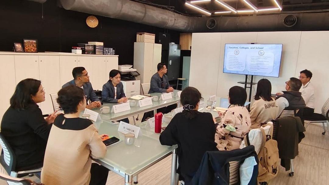 สำหรับการหารือมีวัตถุประสงค์ความร่วมมือและแลกเปลี่ยนทางวิชาการทางด้านดนตรี ศิลปะ ศิลปะการแสดง และงานสร้างสรรค์ทางศิลปกรรม รวมถึงได้เข้าร่วมชมบรรยากาศ สถานที่การจัดการเรียนการสอนและสถานที่จัดแสดงผลงานต่างๆภายในมหาวิทยาลัย โดยมี Dr. Yatin Lin, Dean of Office of International Affairs และทีมผู้บริหารจากคณะต่างๆให้การต้อนรับ