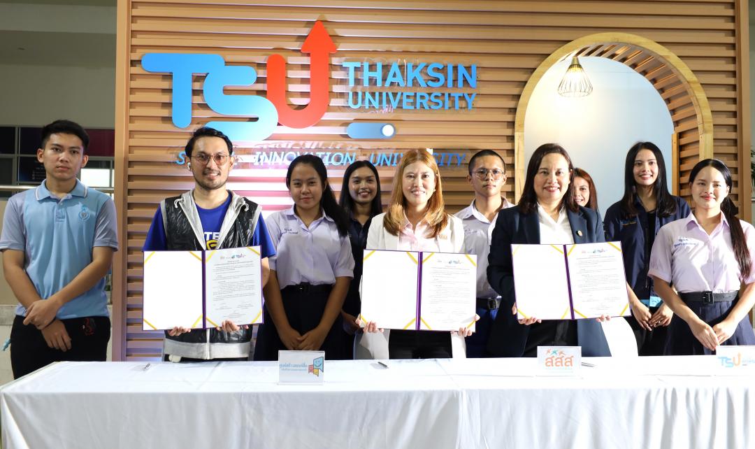 วันที่ 28 พฤศจิกายน 2566 ผู้ช่วยศาสตราจารย์ ดร.สิรยา สิทธิสาร รองอธิการบดีฝ่ายกิจการนิสิตและพันธกิจสัมพันธ์มหาวิทยาลัยทักษิณ เป็นประธานเปิดกิจกรรมประชุมเสวนา “เอาพรือ! ” Health Protect สร้างสรรค์ไอเดียของคนรุ่นใหม่ลดปัจจัยเสี่ยง ภายใต้โครงการ ป้องกันเด็กไทยไม่ตกเป็นเหยื่อบุหรี่ไฟฟ้า (PROTECT NEW GEN) พร้อมลงนามความร่วมมือขับเคลื่อนสานเสริมพลังภาคีเพื่อร่วมรังสรรค์นวัตกรรมป้องกันปัจจัยเสี่ยงในกลุ่มคนรุ่นใหม่ โดย ร่วมกับสำนักสนับสนุนการควบคุมปัจจัยเสี่ยงหลัก (สน.1) สำนักงานกองทุนสนับสนุนการสร้างเสริมสุขภาพ (สสส.) โดยคุณรุ่งอรุณ ลิ้มฬหะภัณ และศูนย์สร้างสรรค์สื่อเพื่อเด็กเยาวชนและครอบครัว (สื่อยกกำลังสุข) โดยคุณฮาริส มาศชาย และมหาวิทยาลัยทักษิณ ณ ลานชั้น 1 อาคาร 50 ปี มหาวิทยาลัยทักษิณ วิทยาเขตสงขลา