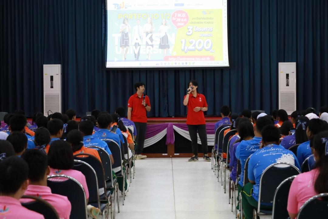 วันที่ 1 ธันวาคม 2566) งานสื่อสารองค์กร มหาวิทยาลัยทักษิณ โดยอาจารย์ ดร.ทิพย์ทิวา สัมพันธมิตร ผู้ช่วยอธิการบดี ฝ่ายวิจัยและสื่อสารองค์กร พร้อมด้วยบุคลากรจากคณะและวิทยาลัย ในมหาวิทยาลัยทักษิณ ร่วมต้อนรับโรงเรียนสตูลวิทยา อำเภอเมือง จังหวัดสตูล จำนวน 347 คน พร้อมทั้งแนะแนวการศึกษาต่อในสถาบันอุดมศึกษา ณ หอประชุมปาริชาต มหาวิทยาลัยทักษิณ วิทยาเขตสงขลา