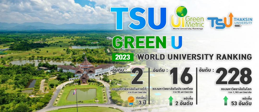 ผลการจัดอันดับมหาวิทยาลัยสีเขียวโลกปี 2023 (UI Green Metric World University Ranking 2023) มหาวิทยาลัยทักษิณได้รับการจัดอันดับในกลุ่มต่างๆ ดังนี้