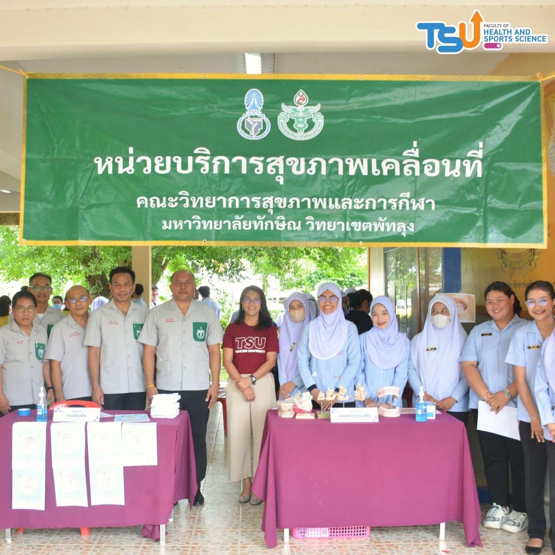 คณะผู้บริหาร คณาจารย์ บุคลากร และนิสิต คณะวิทยาการสุขภาพและการกีฬา มหาวิทยาลัยทักษิณ วิทยาเขตพัทลุงจัดโครงการออกหน่วยสุขภาพเคลื่อนที่ร่วมกับหน่วยแพทย์เคลื่อนที่ จังหวัดพัทลุง (พอ.สว.) ณ โรงเรียนศรีบรรพตพิทยาคม หมู่ที่ 9 บ้านสำนักวา ตำบลเขาย่า อำเภอศรีบรรพต จังหวัดพัทลุง