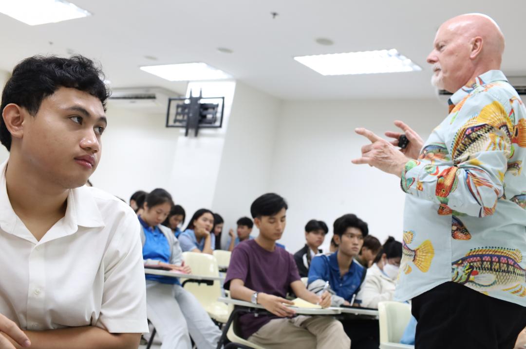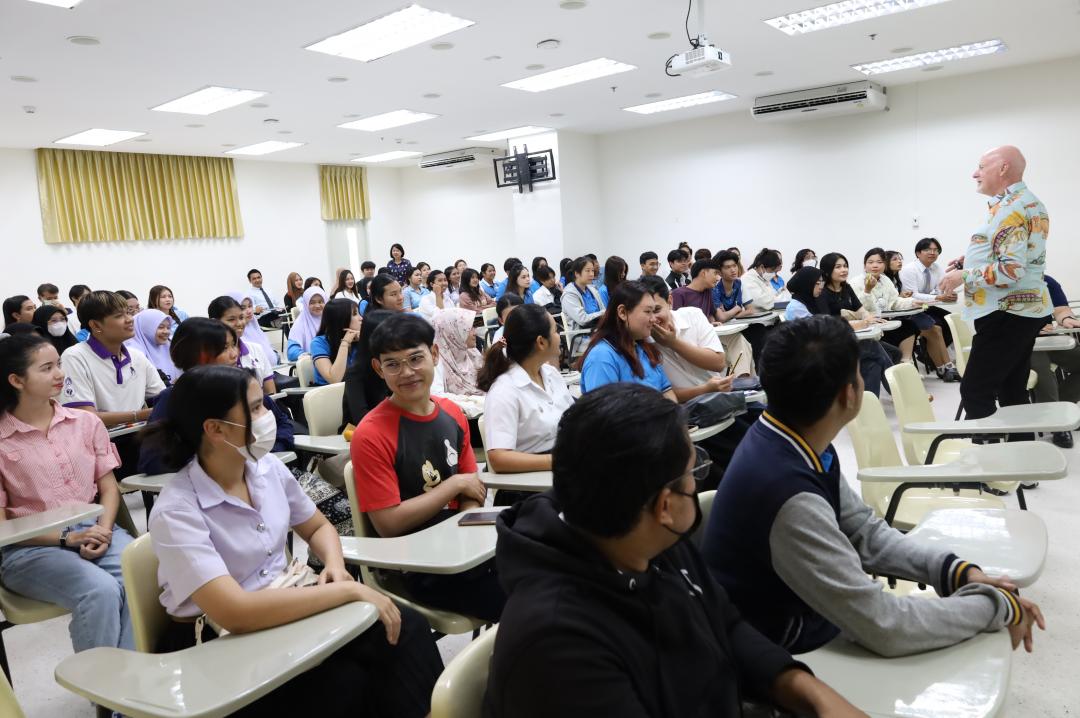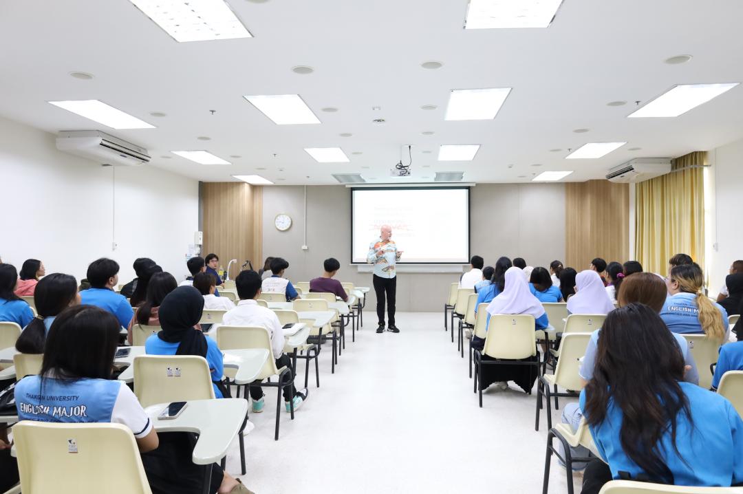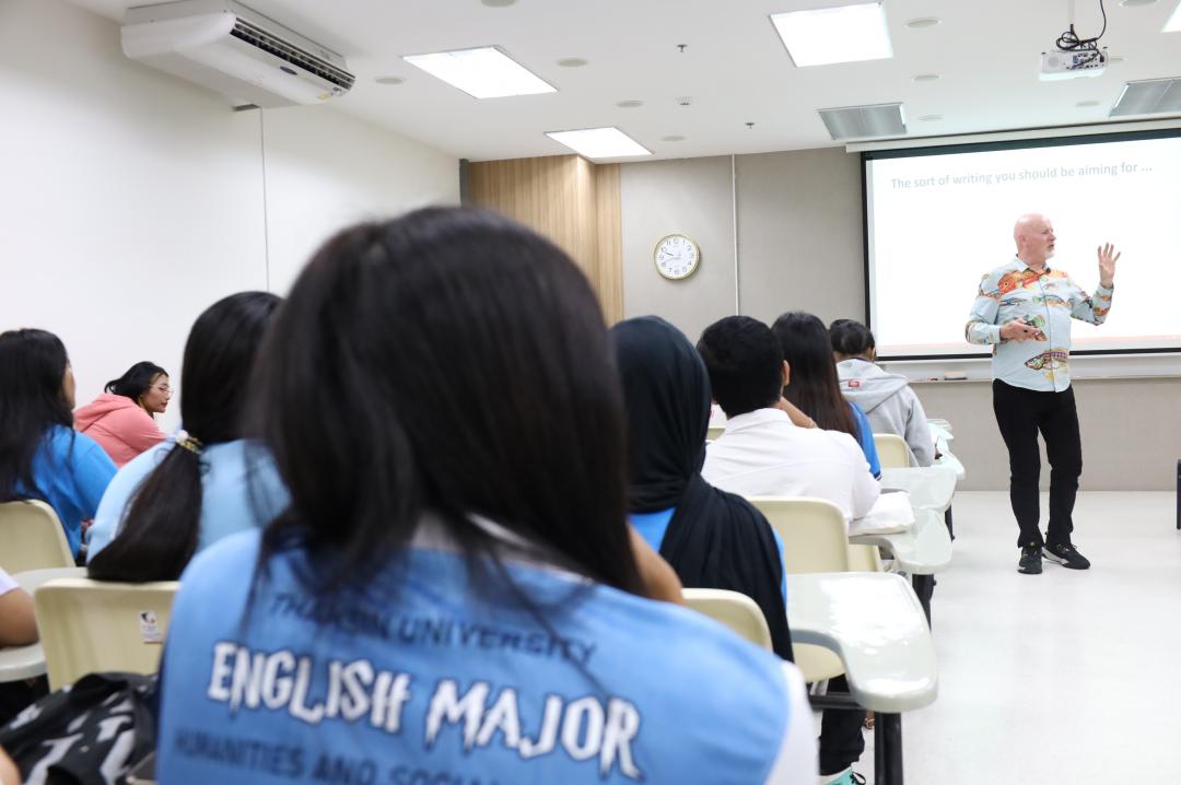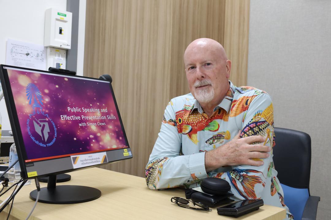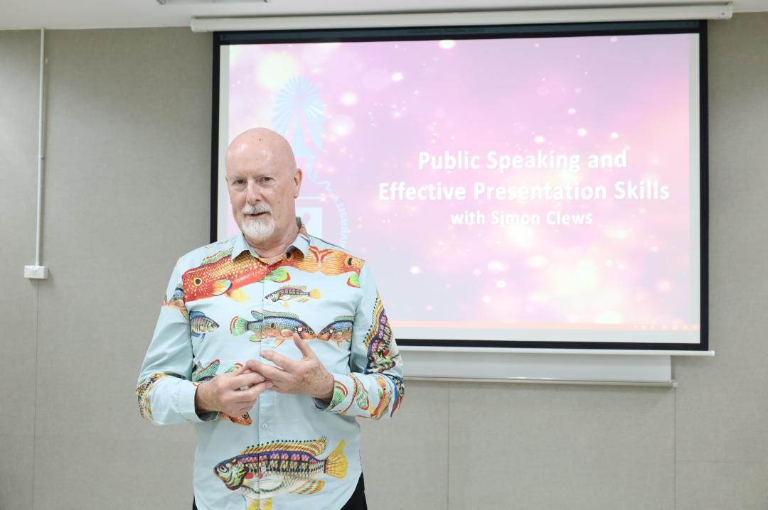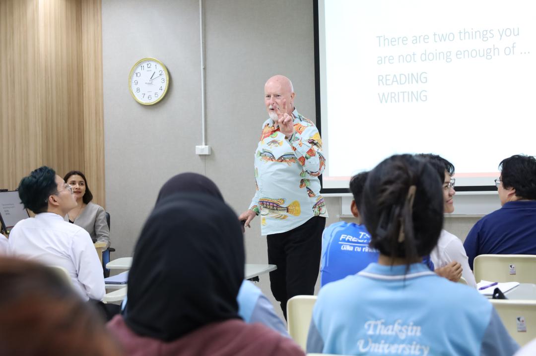 วันนี้ (16 มกราคม 2567) วิทยาลัยนานาชาติ มหาวิทยาลัยทักษิณ นำโดย อาจารย์ ดร.พิทยาธร แก้วคง รักษาการแทนผู้อำนวยการ วิทยาลัยนานาชาติ พร้อมด้วยบุคลากรและนิสิตหลักสูตรภาษาอังกฤษ เข้าร่วมอบรมโครงการส่งเสริมการสร้างศักยภาพนิสิตและบุคลากรสู่ความเป็นนานาชาติ หัวข้อ “การพัฒนาทักษะการพูดในที่สาธารณะและการนำเสนอผลงานให้มีประสิทธิภาพ” (Public Speaking and Effective Presentation Skill) โดยได้รับเกียรติจาก MR.SIMON CLEWS (Learning Advisor, office of the dean of higher degree by research, The Australian National University, Canberra, Australia.) เป็นวิทยากร