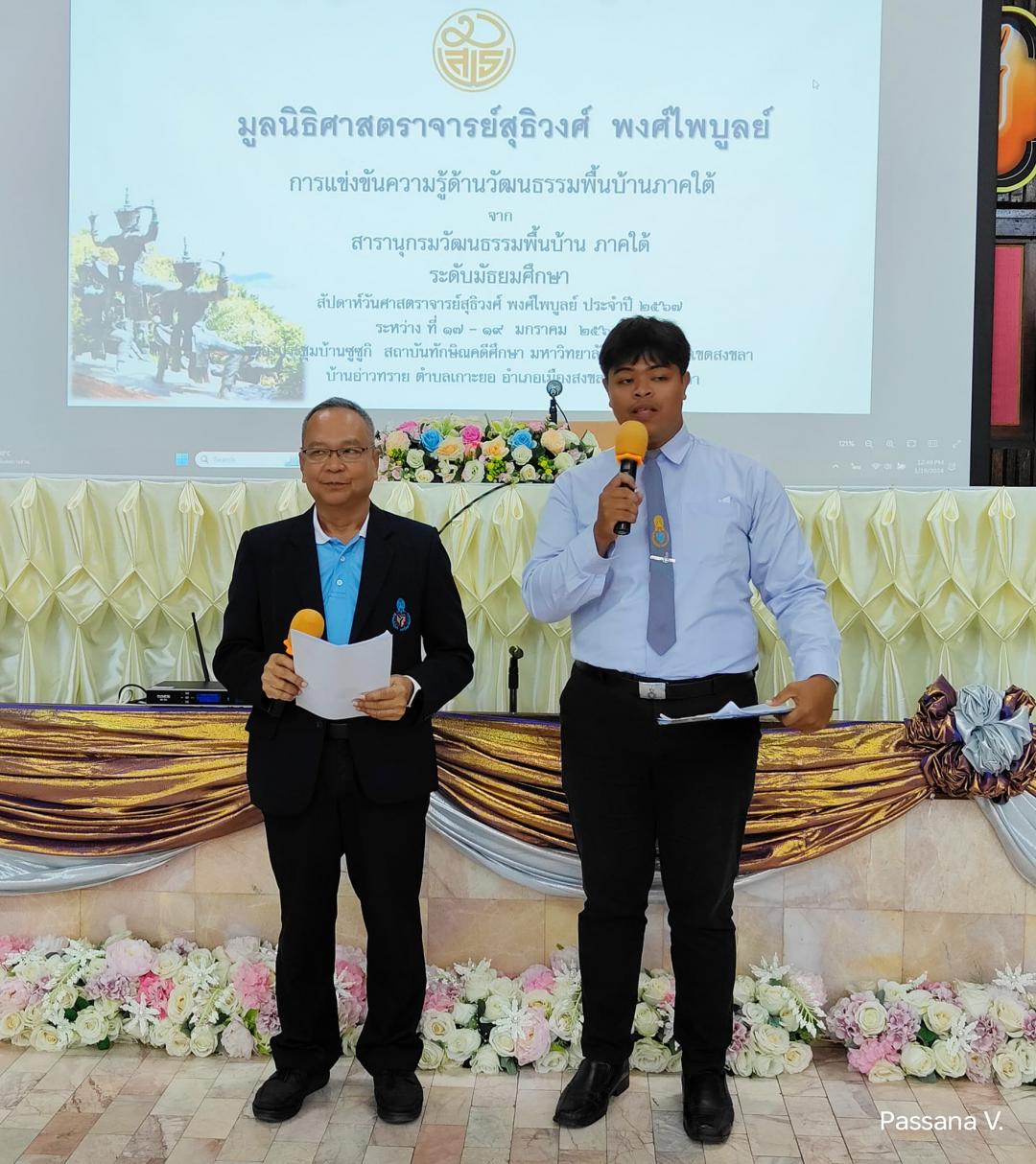 มูลนิธิศาสตราจารย์สุธิวงศ์ พงศ์ไพบูลย์ ร่วมกับสถาบันทักษิณคดีศึกษา จัดแข่งขันความรู้ด้านวัฒนธรรมพื้นบ้านภาคใต้ จากสารานุกรมวัฒนธรรมไทย ภาคใต้ มุ่งสืบสานต่อยอดศิลปวัฒนธรรมท้องถิ่น
