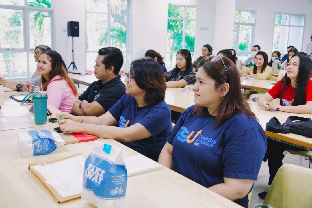 มหาวิทยาลัยทักษิณ กล่าวต้อนรับผู้เข้าร่วมการอบรม พร้อมเป็นประธานเปิดกิจกรรม และได้รับเกียรติจาก อาจารย์ลัดดา ประสาน อาจารย์ประจำสาขานิเทศศาสตร์ คณะมนุษยศาสตร์และสังคมศาสตร์ มหาวิทยาลัยทักษิณ บรรยาย หัวข้อ "เทคนิคการเขียนข่าว" รศ.ดร.พรพันธ์ุ เขมคุณาศัย อาจารย์ประจำสาขาภาษาไทย คณะมนุษยศาสตร์และสังคมศาสตร์ มหาวิทยาลัยทักษิณ บรรยายหัวข้อ "เล่าเรื่องอย่างไรให้ถูกใจผู้อ่าน" และคุณวรณัน เอกหิรัณยราษฎร์ หัวหน้างานสื่อสารองค์กร นายปรเมศวร์ กาแก้ว หัวหน้ากลุ่มภารกิจผลิตสื่อและสารสนเทศ งานสื่อสารองค์กร บรรยายหัวข้อ "จับประเด็น เพื่อให้เป็นข่าว ในยุคดิจิทัลคอนเทนส์" ณ ห้อง Co-working Space ชั้น 1 สถาบันทรัพยากรการเรียนรู้และเทคโนโลยีดิจิทัล มหาวิทยาลัยทักษิณ วิทยาเขตพัทลุง โดยมีผู้เข้าร่วมการอบรมจากเครือข่ายงานสื่อสารองค์กร จำนวน 53 คน เข้าร่วมอบรม