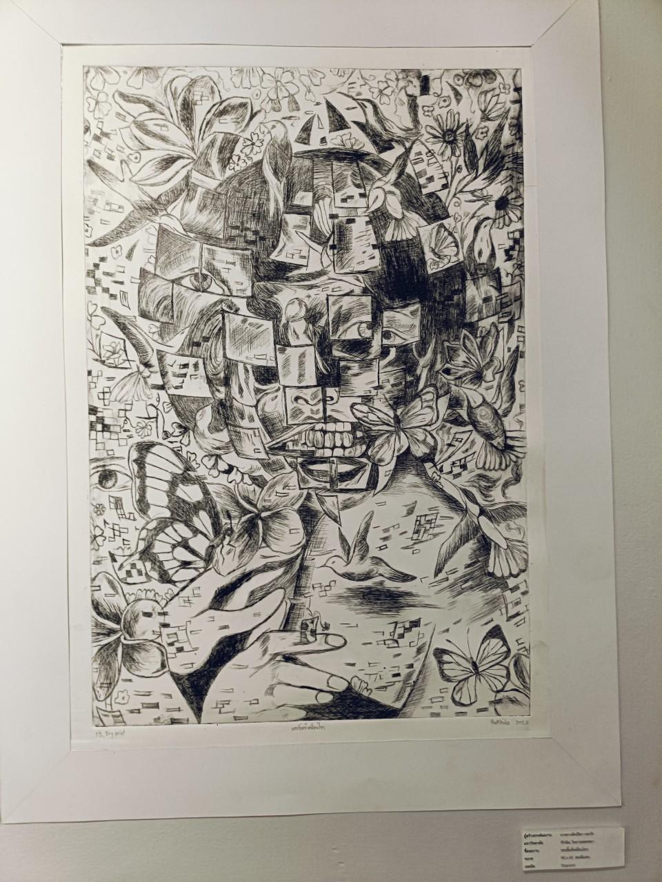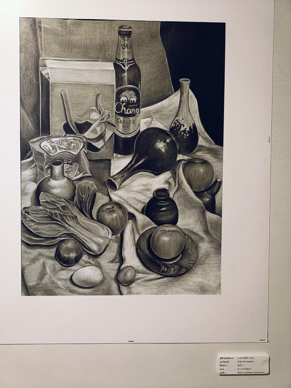 นอกจากนี้ นางสาวพัทธ์ธิดา กอวัง นิสิตชั้นปีที่ 3 หลักสูตรศิลปศึกษา คณะศึกษาศาสตร์ ร่วมกับคณะศิลปกรรมศาสตร์ มหาวิทยาลัยทักษิณ ให้ข้อมูลกับทีมข่าว TSU NEWS ว่า สำหรับผลงานที่จัดแสดงนิทรรศการผ่านการคัดเลือกผลงานและนำมาจัดแสดงให้ผู้ที่มีความสนใจทางศิลปะ นักสะสมผลงานได้รับรู้เกิดเป็นความสนใจ ติดตาม ศักยภาพการสร้างสรรค์ผลงานของนิสิตนักศึกษาทั้ง 2 สถาบัน เป็นการสร้างสรรค์และการส่งเสริมสร้างความรู้ในการนำเสนอผลงานศิลปะสู่สังคม เกิดพื้นที่ที่เป็นการสร้างรายได้จากผลงานศิลปะของนิสิตนักศึกษา ซึ่งสอดคล้องกับพันธกิจของหลักสูตรศิลปศึกษา ที่มุ่งเน้นการเสริมสร้างประสบการณ์การจัดนิทรรศการการสร้างสรรค์ผลงาน โดยนิทรรศการในครั้งนี้ประกอบด้วยผลงานสร้างสรรค์มากกว่า 300 ชิ้น ได้แก่ผลงานภาพเขียนสีน้ำ ผลงานดินสอ EE และดินสอขาวบนกระดาษเทา ผลงานดินสอ EE บนกระดาษปรู๊ฟ ผลงานปากกาบนกระดาษ 100 ปอนด์ ผลงานสีน้ำและปากกา ผลงานสีอะคริลิคบนเฟรมผ้าใบ ผลงาน ปากกาสีและปะติด ผลงานปะติด ผลงานสีโปสเตอร์และปากกาสี ผลงานสีโปสเตอร์และดินสอ EE ผลงานDrawing ผลงานประติมากรรมกระดาษ และผลงานสีน้ำมันบนผ้าใบ โดยเฉพาะผลงานประติมากรรมที่นำมาจัดแสดงเป็นประติมากรรมกระดาษผู้มีชื่อเสียงในวงการต่าง ๆ ซึ่งเป็นผู้มีชื่อเสียงระดับโลก อาทิ บารัค โอบามา (ประธานาธิปดีของประเทศสหรัฐอเมริกา) ชาลี ชิบปิน (นักแสดง) เป็นต้น