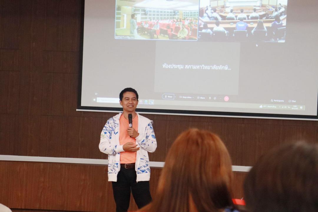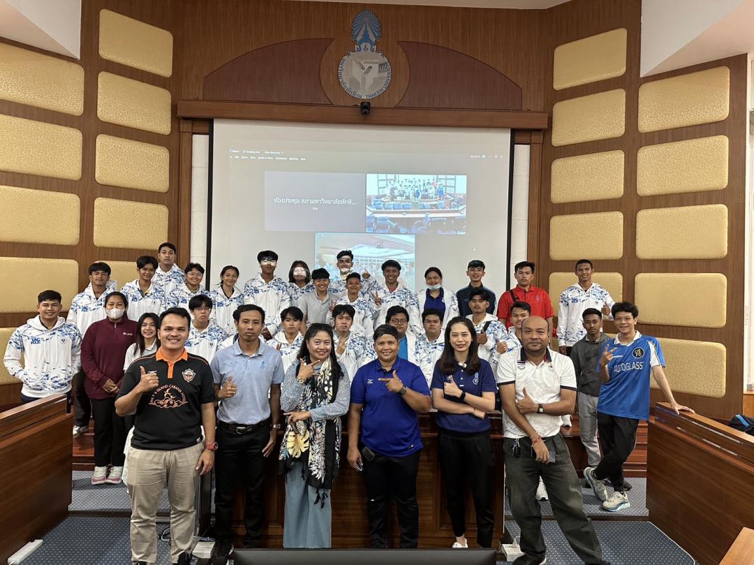 วันที่ 24 มกราคม 2567 ฝ่ายกิจการนิสิต มหาวิทยาลัยทักษิณ จัดประชุมชี้แจงรายละเอียดการเข้าร่วมการแข่งขันกีฬามหาวิทยาลัยแห่งประเทศไทย ครั้งที่ 49 รอบมหกรรม และรับฟังโอวาทจาก รองศาสตราจารย์ ดร.ณฐพงศ์ จิตรนิรัตน์ อธิการบดี และผู้ช่วยศาสตราจารย์ ดร.สิรยา สิทธิสาร รองอธิการบดีฝ่ายกิจการนิสิตและพันธกิจสัมพันธ์ เพื่อสร้างขวัญกำลังใจแก่ทัพนักกีฬา เจ้าหน้าที่ และผู้จัดการทีม ในการเข้าร่วมการแข่งขันกีฬามหาวิทยาลัยแห่งประเทศไทย ครั้งที่ 49 “นนทรีเกมส์” ระหว่างวันที่ 25 มกราคม – 5 กุมภาพันธ์ 2567 ณ มหาวิทยาลัยเกษตรศาสตร์ วิทยาเขตกำแพงแสน จังหวัดนครปฐม โดยมี ผู้ช่วยศาสตราจารย์ ดร.วิทวัฒน์ ขัตติยะมาน คณบดีคณะศึกษาศาสตร์ อาจารย์ ดร.กิตติธัช คงชะวัน รองคณบดีคณะศึกษาศาสตร์ อาจารย์ ดร.สิงหา ตุลยกุล ผู้ช่วยคณบดีคณะศึกษาศาสตร์ นายคำรบ คชภักดี หัวหน้าฝ่ายกิจการนิสิต พร้อมด้วยผู้จัดการทีม ผู้ฝึกสอน นักกีฬา และบุคลากรฝ่ายกิจการนิสิต เข้าร่วมให้กำลังใจกับนักกีฬา ณ ห้องแสงสุริยา คณะศึกษาศาสตร์ มหาวิทยาลัยทักษิณ วิทยาเขตสงขลา และทางออนไลน์จากห้องประชุมสภามหาวิทยาลัย อาคารบริหารและสำนักงานกลาง มหาวิทยาลัยทักษิณวิทยาเขตพัทลุง