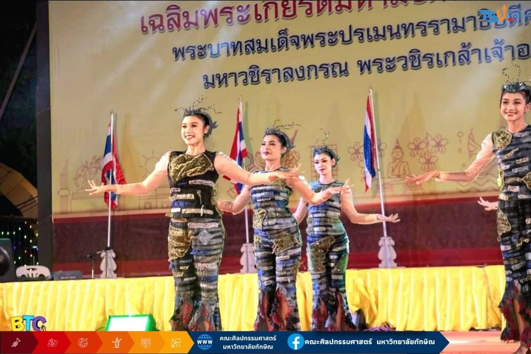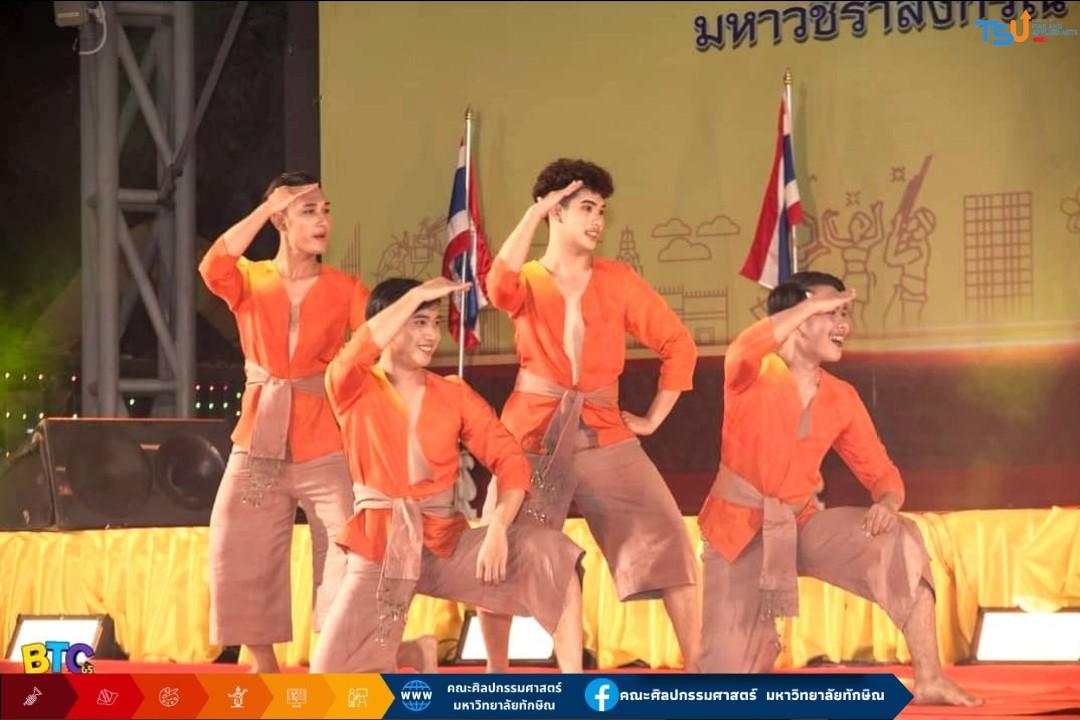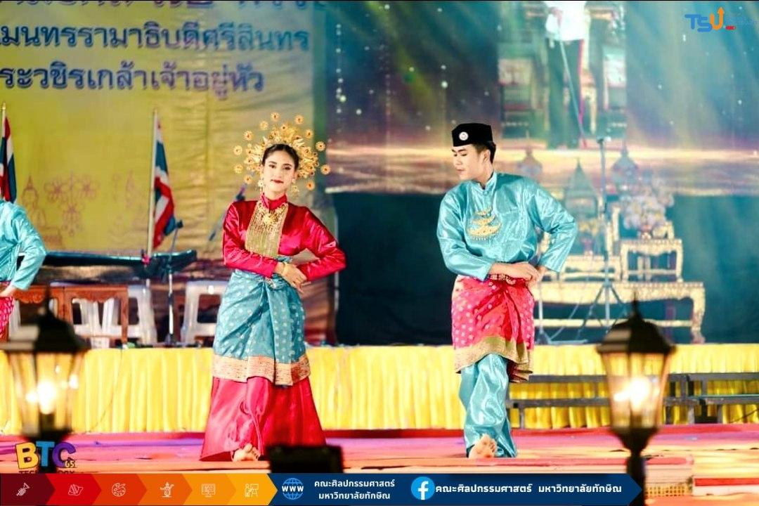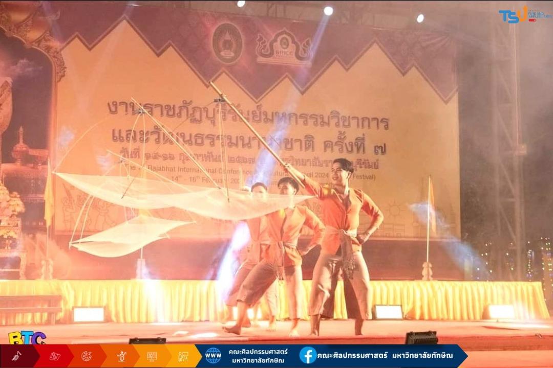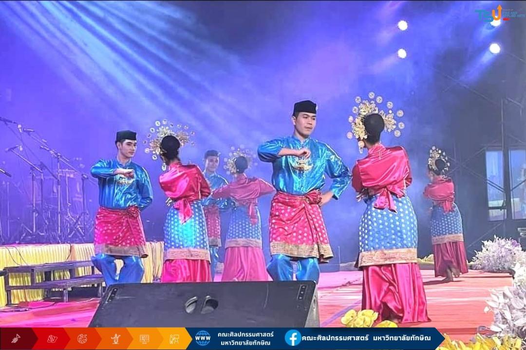 โดยคณาจารย์และนิสิต สาขาวิชาศิลปะการแสดง คณะศิลปกรรมศาสตร์ มหาวิทยาลัยทักษิณ วิทยาเขตสงขลา ได้รับเชิญให้ร่วมแสดงในงานวันราชภัฏบุรีรัมย์มหกรรมวิชาการและวัฒนธรรมนานาชาติ ครั้งที่ 7 (BRICC FESTIVEL 2024) ระหว่างวันที่ 14-16 กุมภาพันธ์ 2567 ณ มหาวิทยาลัยราชภัฏบุรีรัมย์ จังหวัดบุรีรัมย์ ซึ่งการแสดงในครั้งนี้สาขาวิชาฯ ได้นำผลงานสร้างสรรค์ที่เป็นตัวแทนของศิลปวัฒนธรรมภาคใต้เข้าร่วม จำนวน 5 ชุดการแสดง ประกอบด้วย