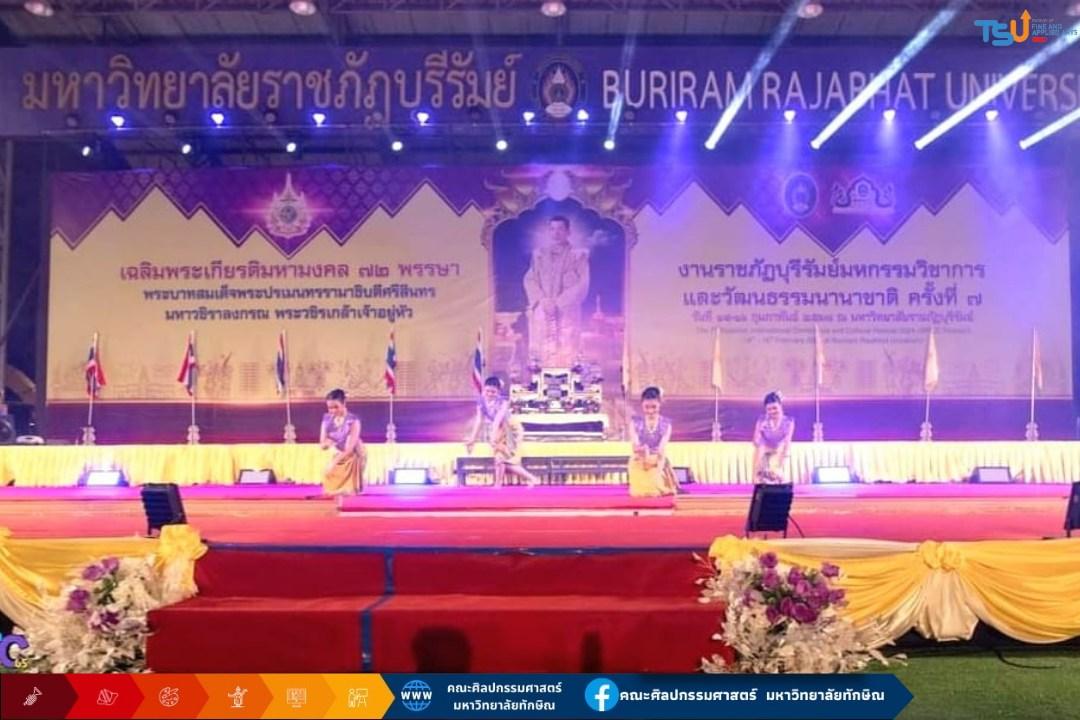 คณาจารย์และนิสิต สาขาวิชาศิลปะการแสดง คณะศิลปกรรมศาสตร์ มหาวิทยาลัยทักษิณ ได้รับเชิญร่วมแสดงในงานวันราชภัฎบุรีรัมย์มหกรรมวิชาการและวัฒนธรรมนานาชาติ ครั้งที่ 7
