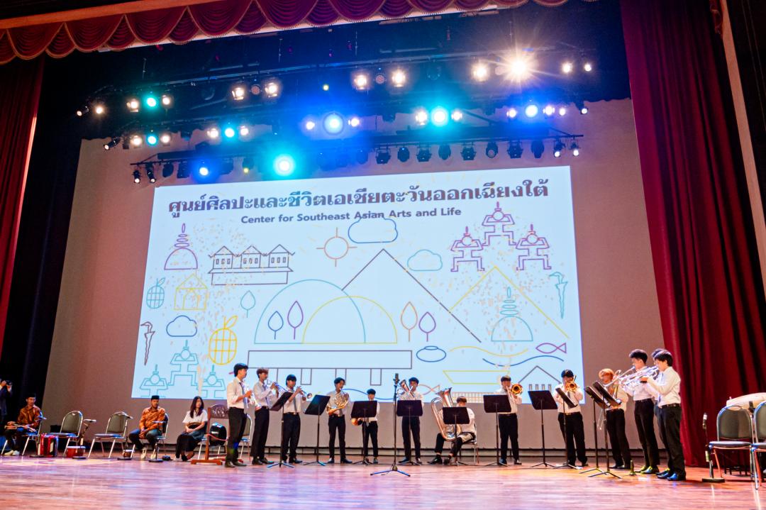 สำหรับการแสดงพิธีเปิด “Southeast Asian Arts and Life” ประกอบด้วย การแสดงวงดนตรีไทยปี่พาทย์ โดย สาขาวิชาดุริยางคศาสตร์ไทย การแสดงวงดนตรีรองเง็ง โดย สาขาวิชาดุริยางคศาสตร์ไทย การแสดงดนตรีร่วมสมัย โดย สาขาวิชาดุริยางคศาสตร์สากลและสาขาวิชาดุริยางคศาสตร์ไทย การแสดงโนรา โดย ผศ.ธรรมนิตย์ นิคมรัตน์ ศิลปินแห่งชาติ สาขาศิลปะการแสดงโนรา ประจำปี 2564