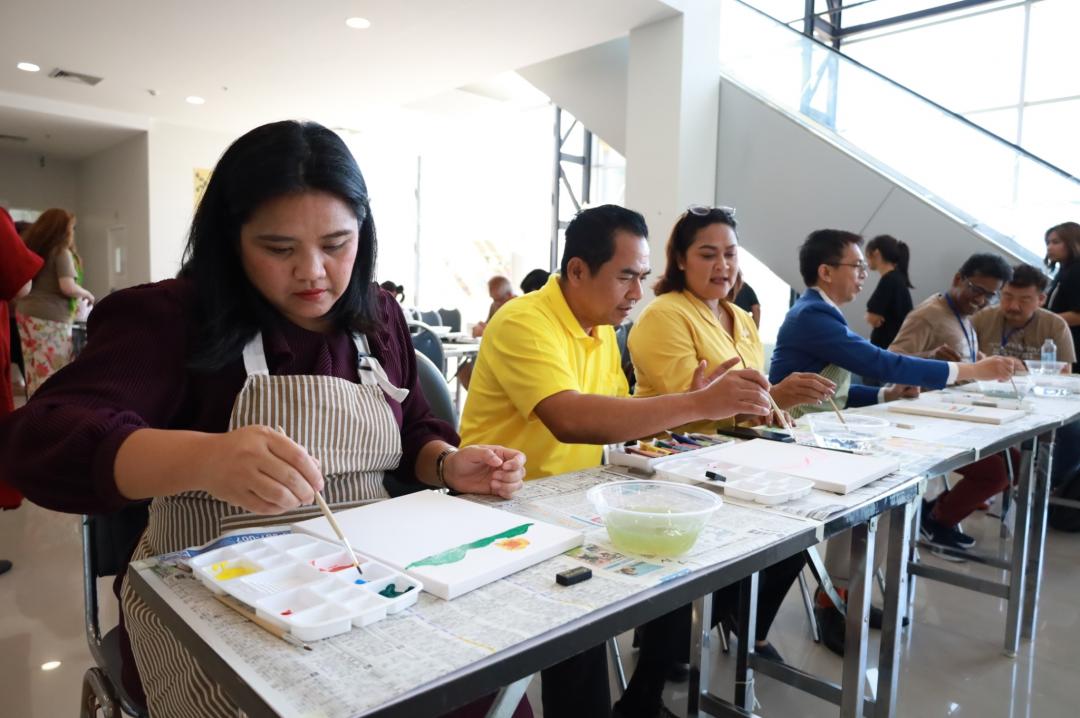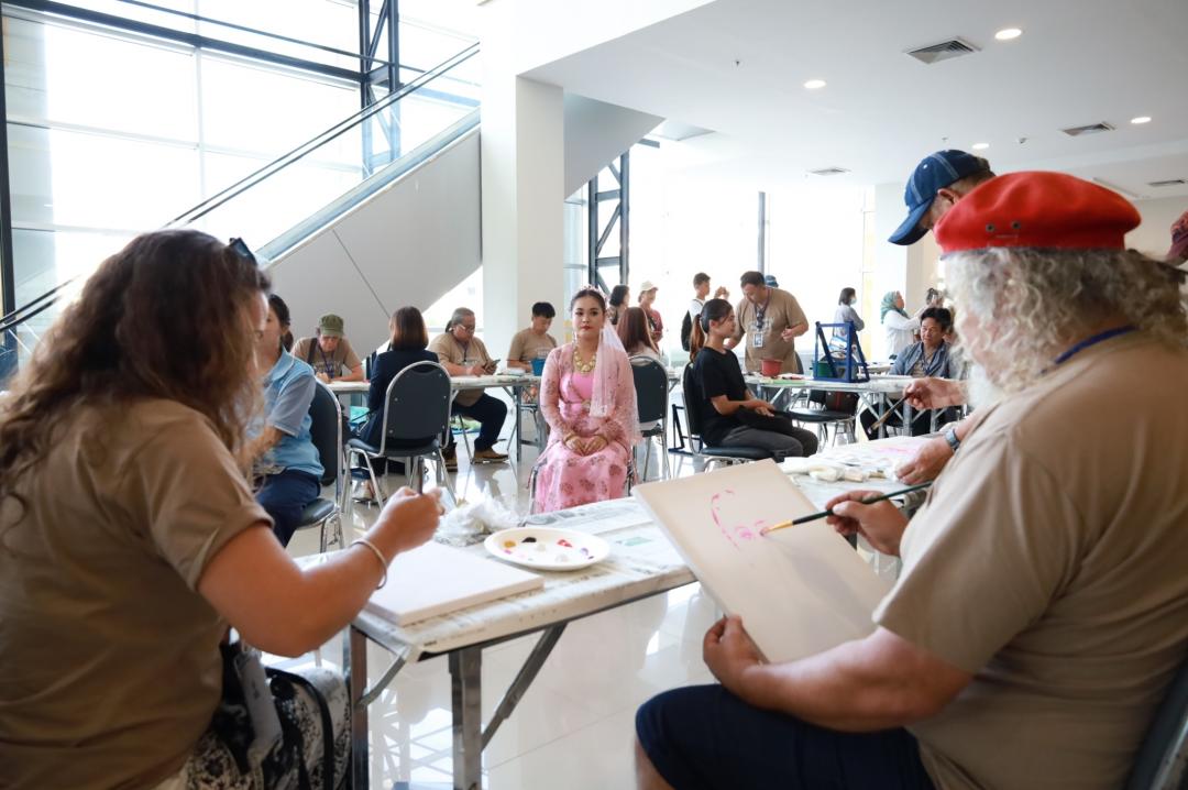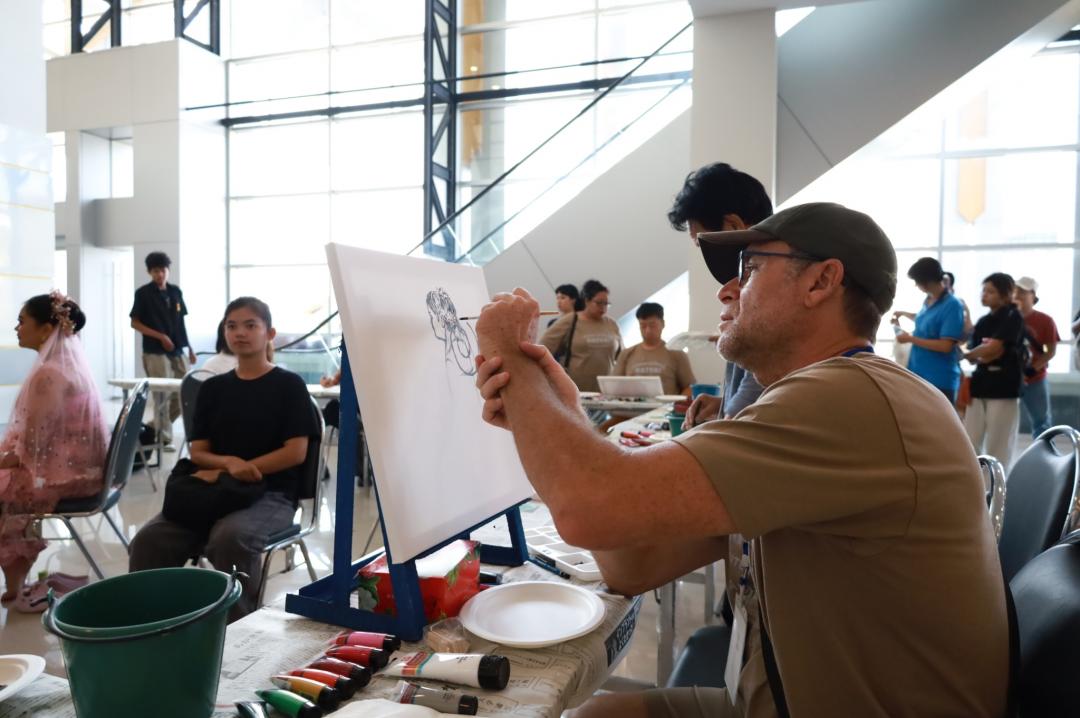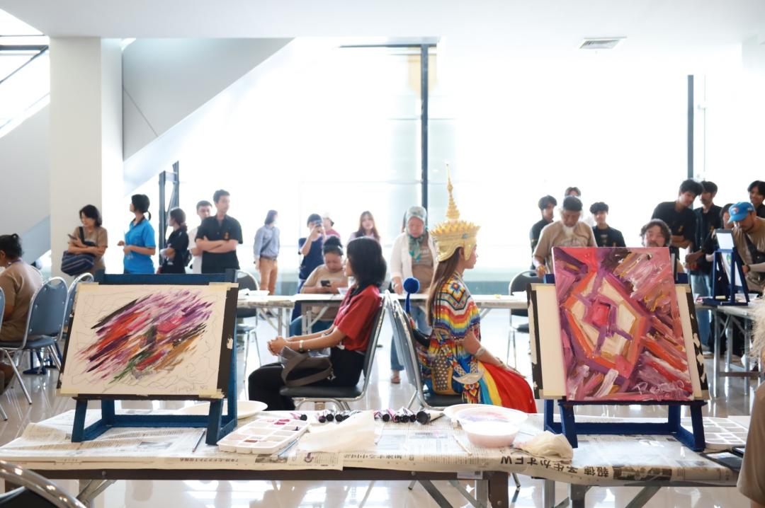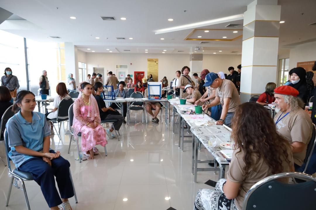 สำหรับกิจกรรม Workshop ด้านทัศนศิลป์ ในวันนี้ได้รับเกียรติจากสมาคมศิลปินนานาชาติภาดใต้ จาก 21 ประเทศ ได้แก่ มาเลเซีย สิงคโปร์ เวียดนาม อินโดนีเชีย พิลิปปินส์ จีน เกาหลีไต้ ญี่ปุ่น มองโกเลีย บังคลาเทศ ศรีลังกา อินเดีย อียิปต์ ออสเตรีย มาเซโดเนีย อังกฤษ ฝรั่งเคส สเปน อเมริกา และ ไทย มาร่วมสร้างสรรค์ประสบการณ์ทางด้านทัศนศิลป์ ทั้งนี้ผู้เข้าร่วมโครงการจะได้แลกเปลี่ยนเรียนรู้ศิลปวัฒนธรรมระหว่างกัน เพื่อให้สามารถต่อยอดผลงานสร้างสรรค์ นอกจากนี้ได้จัดให้มีการแสดงผลงาน โดย กลุ่มวิจัยโนรา (คณะศิลปกรรมศาสตร์) กลุ่มวิจัยกริช (สถาบันทักษิณคดีศึกษาและคณะศิลปกรรมศาสตร์) และงานวิจัยดินเผา (อาจารย์ ดร.วิเชษฐ์ จันทร์คงหอมและผู้ช่วยศาสตราจารย์ดำรงค์ ชีวะสาโร คณะศิลปกรรมศาสตร์) ซึ่งผู้สนใจสามารถเข้าร่วมชื่นชมผลงานของเหล่าศิลปินได้ที่ หอเปรมดนตรี ชั้น 1 มหาวิทยาลัยทักษิณ วิทยาเขตสงขลา