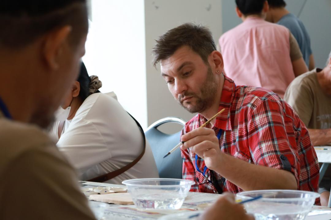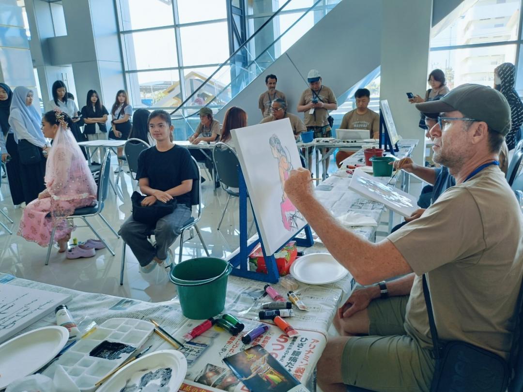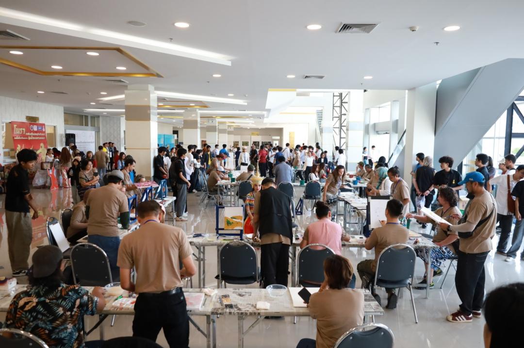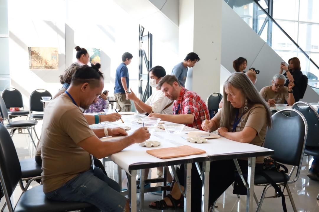 สำหรับกิจกรรม Workshop ด้านทัศนศิลป์ ในวันนี้ได้รับเกียรติจากสมาคมศิลปินนานาชาติภาดใต้ จาก 21 ประเทศ ได้แก่ มาเลเซีย สิงคโปร์ เวียดนาม อินโดนีเชีย พิลิปปินส์ จีน เกาหลีไต้ ญี่ปุ่น มองโกเลีย บังคลาเทศ ศรีลังกา อินเดีย อียิปต์ ออสเตรีย มาเซโดเนีย อังกฤษ ฝรั่งเคส สเปน อเมริกา และ ไทย มาร่วมสร้างสรรค์ประสบการณ์ทางด้านทัศนศิลป์ ทั้งนี้ผู้เข้าร่วมโครงการจะได้แลกเปลี่ยนเรียนรู้ศิลปวัฒนธรรมระหว่างกัน เพื่อให้สามารถต่อยอดผลงานสร้างสรรค์ นอกจากนี้ได้จัดให้มีการแสดงผลงาน โดย กลุ่มวิจัยโนรา (คณะศิลปกรรมศาสตร์) กลุ่มวิจัยกริช (สถาบันทักษิณคดีศึกษาและคณะศิลปกรรมศาสตร์) และงานวิจัยดินเผา (อาจารย์ ดร.วิเชษฐ์ จันทร์คงหอมและผู้ช่วยศาสตราจารย์ดำรงค์ ชีวะสาโร คณะศิลปกรรมศาสตร์) ซึ่งผู้สนใจสามารถเข้าร่วมชื่นชมผลงานของเหล่าศิลปินได้ที่ หอเปรมดนตรี ชั้น 1 มหาวิทยาลัยทักษิณ วิทยาเขตสงขลา