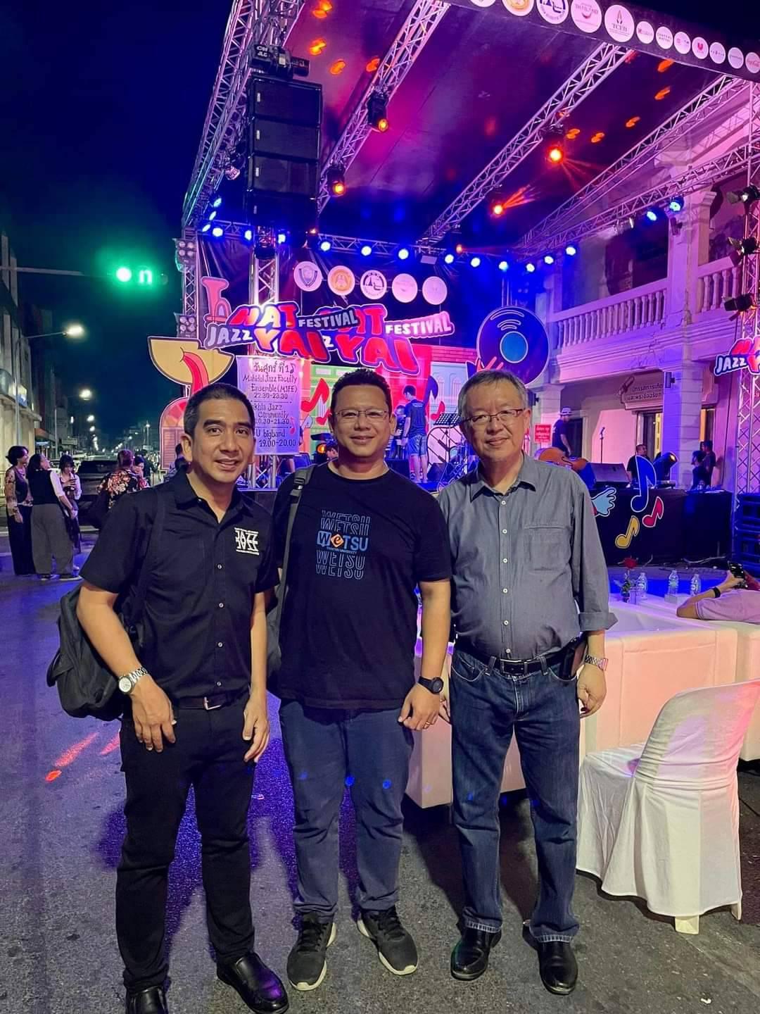 ระหว่างวันที่ 1-2 มีนาคม 2567 จังหวัดสงขลา ร่วมกับเทศบาลนครหาดใหญ่ การท่องเที่ยวแห่งประเทศไทย สำนักงานส่งเสริมการจัดประชุมและนิทรรศการและหอการค้าจังหวัดสงขลา จัดงาน Hatyai Jazz Festival 2024 ให้ทุกท่านได้สัมผัสความสร้างสรรค์ทางดนตรีและศิลปะผ่านกิจกรรมที่น่าสนใจมากมายจากเหล่านักดนตรีและศิลปินเยาวชนรุ่นใหม่ และนับเป็นครั้งแรกกับเทศกาลดนตรีแจ๊สที่ยิ่งใหญ่บนพื้นที่เปิดกลางถนนตลอดสายนิพัทธ์อุทิศ 1 (แยกรถไฟ-แยกธนาคารออมสิน) ในงาน Hatyai Jazz Festival 2024 งาน Jazz ครั้งแรกในหาดใหญ่ จัดขึ้นระหว่างวันที่ 1-2 มีนาคม ซึ่ง สาขาดุริยางคศาสตร์สากล คณะศิลปกรรมศาสตร์ มหาวิทยาลัยทักษิณ โดย ผู้ช่วยศาสตราจารย์ ดร.ระวีวัฒน์ ไทยเจริญ คณบดี คณะศิลปกรรมศาสตร์ พร้อมด้วยผู้ช่วยศาสตราจารย์ ดร.ประหยัด ศุภจิตรา คณาจารย์ และนิสิต คณะศิลปกรรมศาตร์ นำวง ‘Thaksin University Big Band Jazz‘ มหาวิทยาลัยทักษิณ ร่วมกับ วง Mahidol Faculty Jazz Ensemble (Soloist) เข้าร่วมแสดในงาน Hatyai Jazz Festival 2024