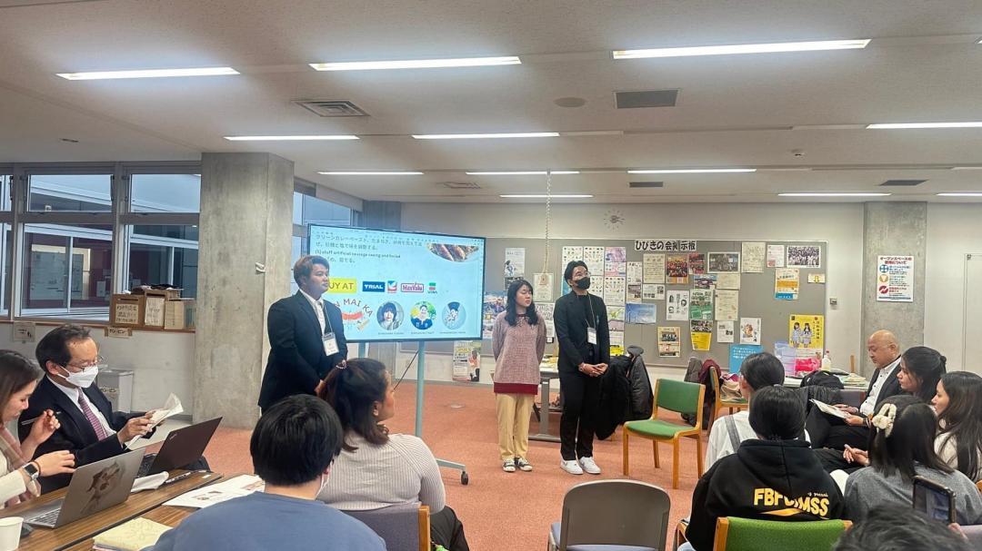 ซึ่งอาจารย์และนิสิตจำนวน 9 คน ได้ร่วมกิจกรรม Research Souvenir Shop ณ Beppu Kotsu Center Shop เป็นการลงพื้นที่จริงเพื่อสำรวจความต้องการของตลาด เช่น รูปแบบสินค้า, แพคเกจจิ้ง เป็นต้น และในส่วนของ(วันที่ 26 กุมภาพันธ์ 2567) เป็นกิจกรรม Pitching โดยมีอาจารย์และบุคลากรจาก University of Kitakyushu คอยรับฟังและให้คำแนะนำเพิ่มเติม