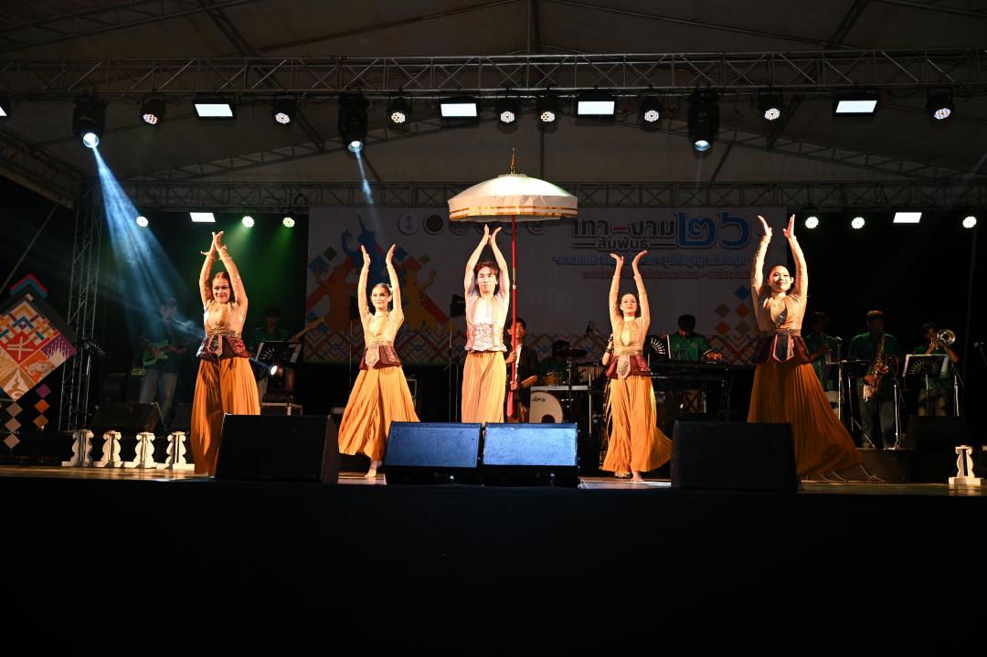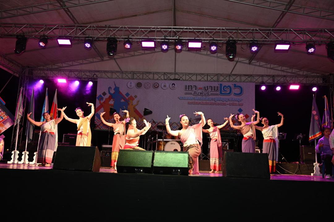 ภายในงานแสดงศิลปวัฒนธรรมเทา-งาม สัมพันธ์ ครั้งที่ 26 รับชมขบวนแห่วัฒนธรรม ,การแสดงชุด “โนรา รวมใจชาวเทา-งาม สัมพันธ์” ,รวมทุกสถาบัน การเดินแบบ “งานหัตถกรรมพื้นถิ่น” ,การแสดงจากนักเรียน ฝึกซ้อมโดยมหาวิทยาลัยทักษิณ ,การแสดง"สาวปากใต้" จากมหาวิทยาลัยทักษิณ ,การแสดงจากนักเรียน ฝึกซ้อมโดยมหาวิทยาลัยพะเยา ,การแสดง "สาวไหมปั่นฝ้าย" จากมหาวิทยาลัยพะเยา ,การแสดงจากนักเรียน ฝึกซ้อมโดยมหาวิทยาลัยบูรพา ,การแสดง "ระบำศรีพโล" จากมหาวิทยาลัยบูรพา ,การแสดงจากนักเรียน ฝึกซ้อมโดยมหาวิทยาลัยศรีนครินทรวิโรฒ ,การแสดง "วิจิตรตระการกรองร้อยพวงมาลัย" จากมหาวิทยาลัยศรีนครินทรวิโรฒ ,การแสดงจากนักเรียน ฝึกซ้อมโดยมหาวิทยาลัยมหาสารคาม ,การแสดง "ฮุงแสงแญงธรรม" จากมหาวิทยาลัยมหาสารคาม ,การแสดงจากนักเรียน ฝึกซ้อมโดยมหาวิทยาลัยนเรศวร