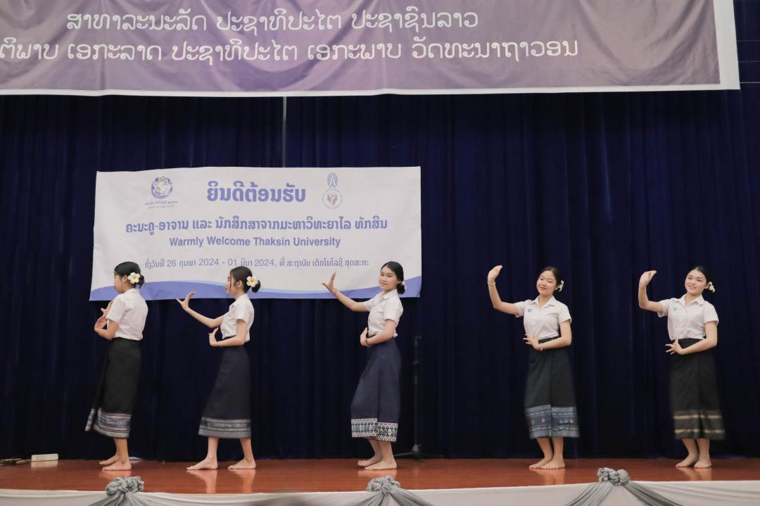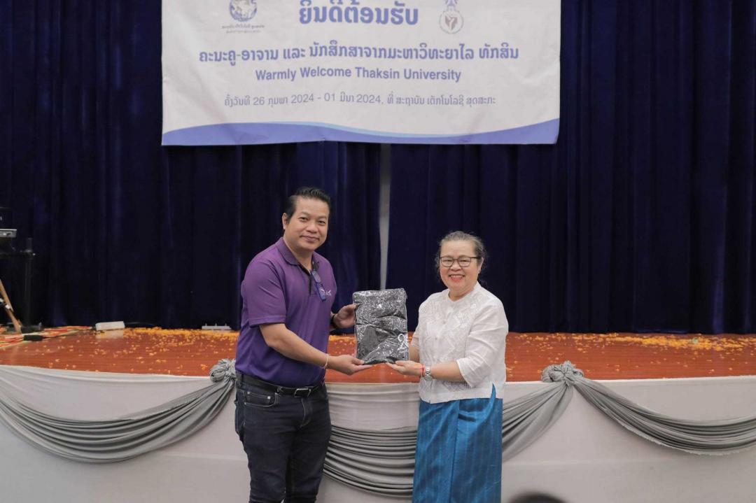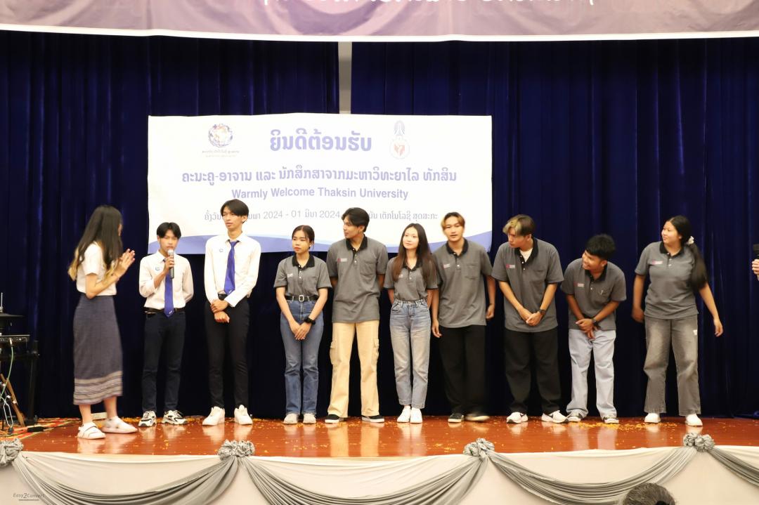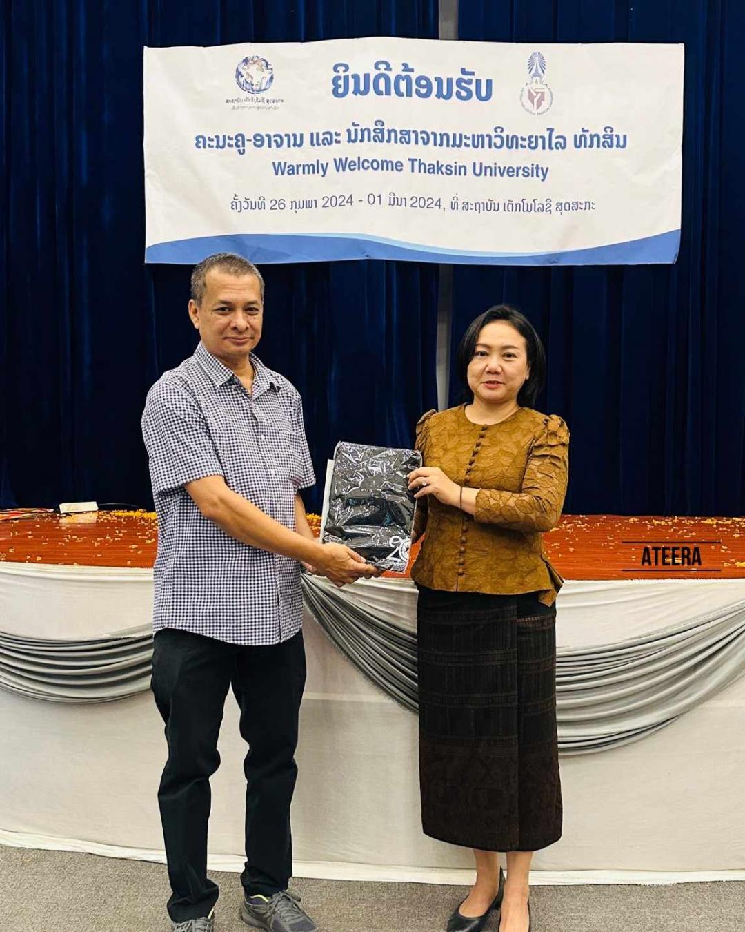 นิสิตและคณาจารย์หลักสูตรนิเทศศาสตร์ คณะมนุษยศาสตร์และสังคมศาสตร์ มหาวิทยาลัยทักษิณ จำนวน 48 คน ภายใต้การนำของ ผู้ช่วยศาสตราจารย์ทีปวิท พงศ์ไพบูลย์ และอาจารย์ธีระ ราชาพล ได้เข้าร่วมกิจกรรมสร้างความร่วมมือทางวิชาการและแลกเปลี่ยนเรียนรู้ทางวัฒนธรรม ระหว่างมหาวิทยาลัยทักษิณ กับ Soutsaka Institute of Technology สาธารณรัฐประชาธิปไตยประชาชนลาว ณ เมืองเวียงจันทน์ ซึ่งกิจกรรมนี้เป็นส่วนหนึ่งของรายวิชาการสื่อสารในสังคมอาเซี่ยน ของนิสิตหลักสูตรนิเทศศาสตร์ ชั้นปีที่ 2 ซึ่งได้ดำเนินการต่อเนื่องมาทุกปีติดต่อกันเป็นปีที่ 11 และได้รับความสำเร็จอย่างดียิ่งเสมอมา จัดขึ้นระหว่างวันที่ 26 กุมภาพันธ์ - 2 มีนาคม 2567 ที่ผ่านมา