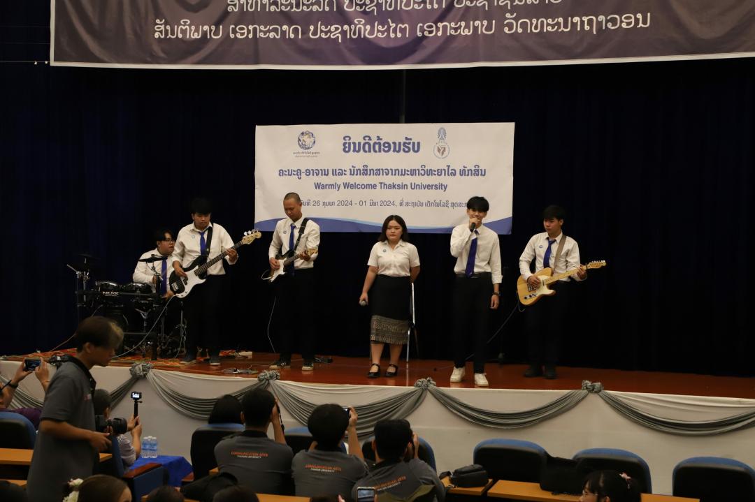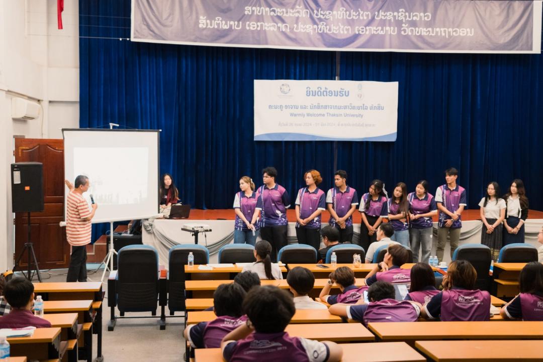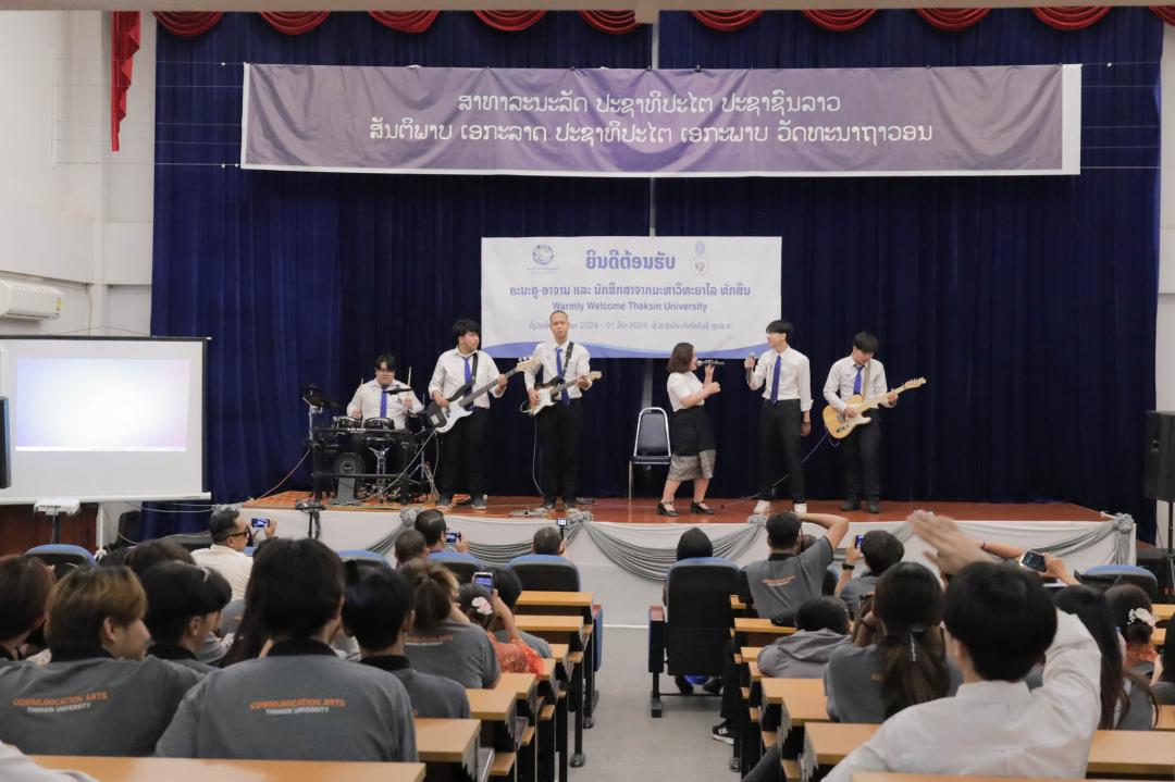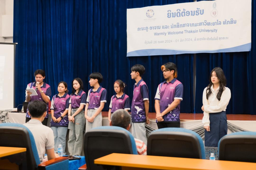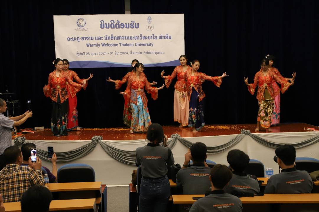 นิสิตและคณาจารย์หลักสูตรนิเทศศาสตร์ คณะมนุษยศาสตร์และสังคมศาสตร์ มหาวิทยาลัยทักษิณ จำนวน 48 คน ภายใต้การนำของ ผู้ช่วยศาสตราจารย์ทีปวิท พงศ์ไพบูลย์ และอาจารย์ธีระ ราชาพล ได้เข้าร่วมกิจกรรมสร้างความร่วมมือทางวิชาการและแลกเปลี่ยนเรียนรู้ทางวัฒนธรรม ระหว่างมหาวิทยาลัยทักษิณ กับ Soutsaka Institute of Technology สาธารณรัฐประชาธิปไตยประชาชนลาว ณ เมืองเวียงจันทน์ ซึ่งกิจกรรมนี้เป็นส่วนหนึ่งของรายวิชาการสื่อสารในสังคมอาเซี่ยน ของนิสิตหลักสูตรนิเทศศาสตร์ ชั้นปีที่ 2 ซึ่งได้ดำเนินการต่อเนื่องมาทุกปีติดต่อกันเป็นปีที่ 11 และได้รับความสำเร็จอย่างดียิ่งเสมอมา จัดขึ้นระหว่างวันที่ 26 กุมภาพันธ์ - 2 มีนาคม 2567 ที่ผ่านมา