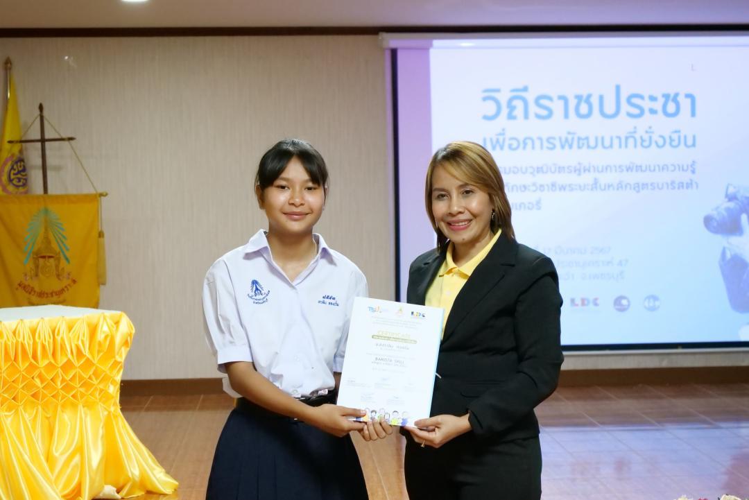 * มอบประกาศนียบัตร "วิถีราชประชาเพื่อการพัฒนาที่ยั่งยืน" แก่นักเรียนที่ผ่านการพัฒนาความรู้และทักษะวิชาชีพ