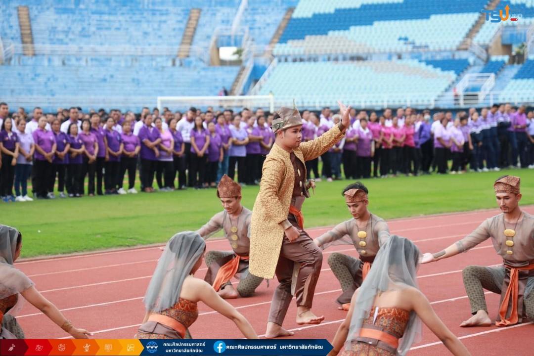 เมื่อวันที่ 29 มีนาคม 2567 สาขาวิชาศิลปะการแสดง คณะศิลปกรรมศาสตร์ ได้รับเชิญจากประชาสัมพันธ์จังหวัดสงขลาให้นำการแสดงชุด “สุลต่านเมืองท่า สิงกอรานคร" ผลงานสร้างสรรค์ของนิสิตสาขาวิชาศิลปะการแสดง เข้าร่วมแสดงในกิจกรรมรวมพลังแปรอักษรตราสัญลักษณ์ “สธ.” และ รูปหัวใจ “คนสงขลา รัก พระเทพ ฯ” เพื่อแสดงพลังความจงรักภักดี และเทิดพระเกียรติสมเด็จพระกนิษฐาธิราชเจ้า กรมสมเด็จพระเทพรัตนราชสุดาฯสยามบรมราชกุมารี เนื่องในโอกาสวันคล้ายวันพระราชสมภพ 2 เมษายน 2567 นำโดยผู้ว่าราชการจังหวัดสงขลา และพสกนิกรชาวสงขลา เพื่อร่วมแสดงออกถึงความจงรักภักดี และเป็นศูนย์กลางการสร้างสรรค์ศิลปกรรมรับใช้สังคมของประเทศ ฝึกซ้อมการแสดงโดย: ผู้ช่วยศาสตราจารย์อรวรรณ โภชนาธาร ประธานสาขาวิชาศิลปะการแสดง