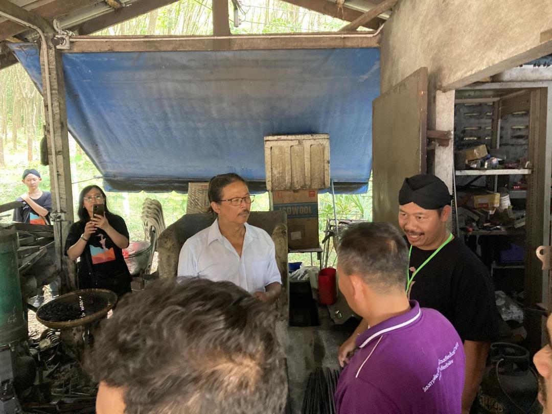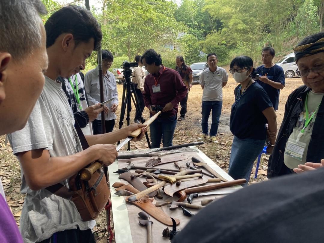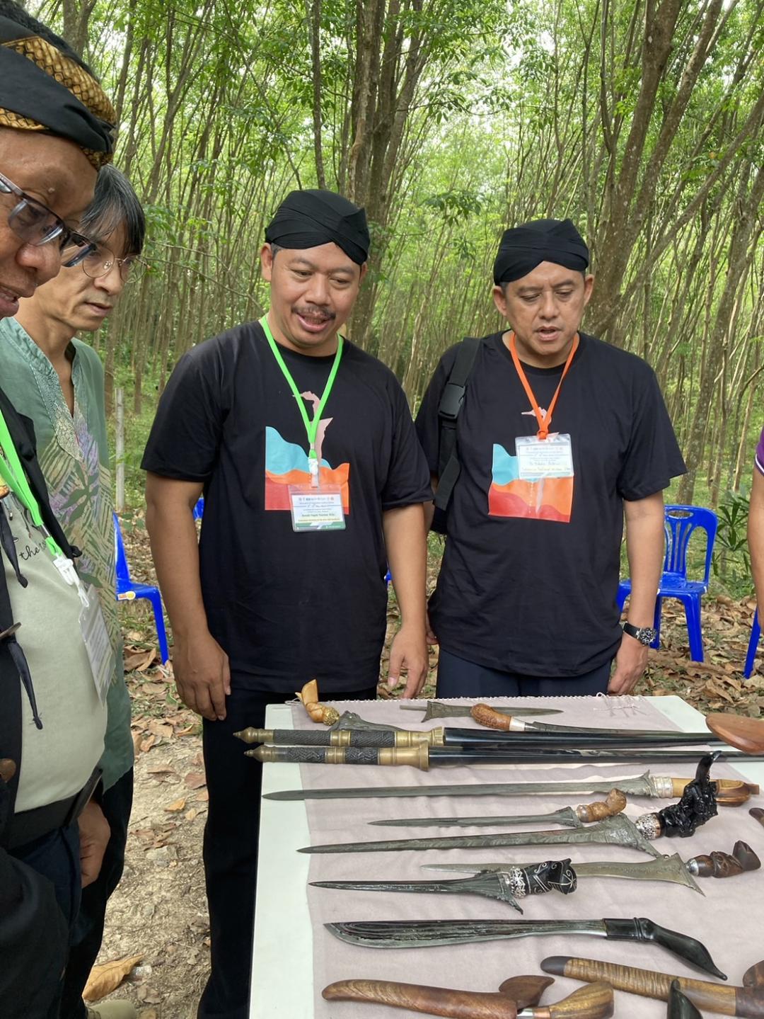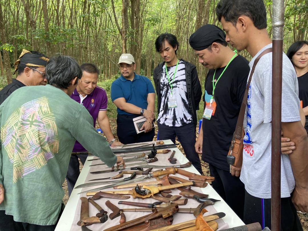 นักวิจัยภายใต้โครงการ กริชสกุลช่างสงขลา : การสร้างคุณค่าและการจัดการทุนวัฒนธรรมแบบมีส่วนร่วมเพื่อพัฒนาเศรษฐกิจฐานรากอย่างยั่งยืน นำทีมสถาบันศิลปะแห่งอินโดนีเซีย สุราการ์ตา ประเทศอินโดนีเซีย Indonesian Institute of the Arts (ISI) Surakarta, Indonesia ลงพื้นที่ ณ ศูนย์การเรียนรู้โรงตีเหล็กช่างนุ้ย ตำบลน้ำน้อย อำเภอหาดใหญ่ จังหวัดสงขลา เพื่อเยี่ยมชมผลงานเเละของสะสม เช่น กริช มีดบาดิก ดาบ เเละหอก ของทีมช่างนุ้ยเเละลูกศิษย์ ที่มีความเป็นเอกลักษณ์งดงามของช่างกริชสกุลสงขลา เเละร่วมกันเเลกเปลี่ยนเรียนรู้ รูปเเบบการทำกริชระหว่างช่างไทยเเละช่างอินโดนีเซีย เมื่อวันที่ 10 พฤษภาคม 2567