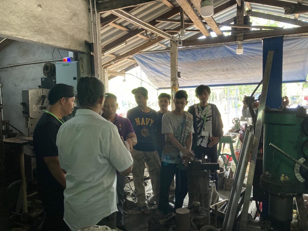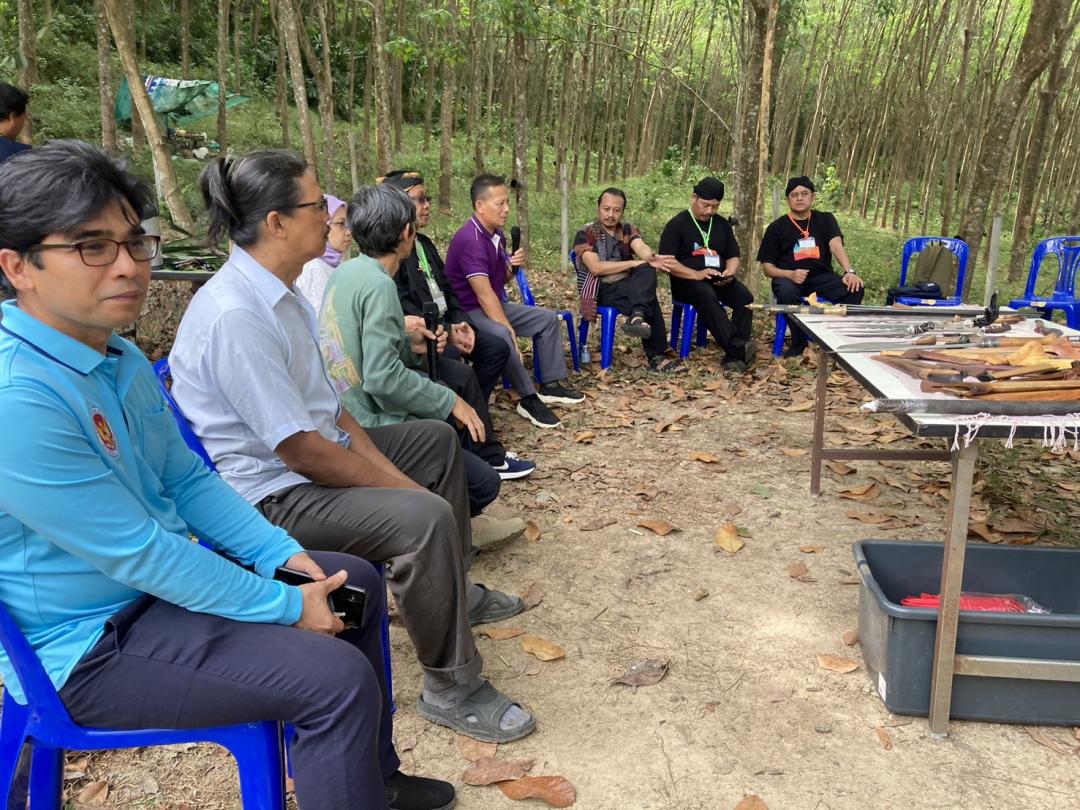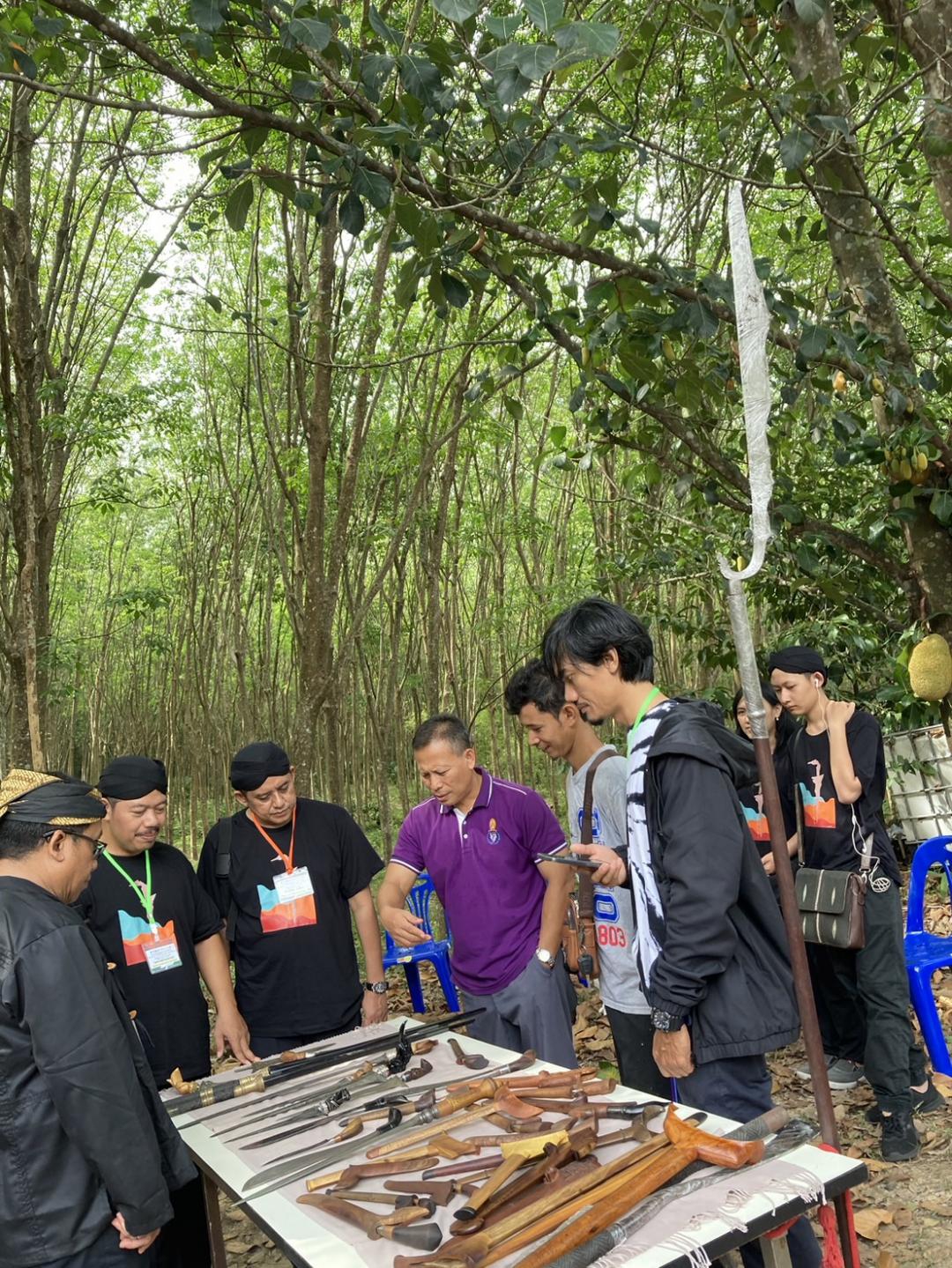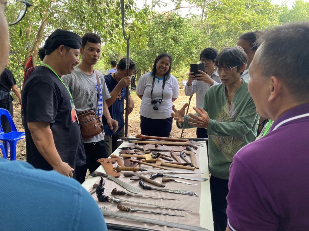 นักวิจัยภายใต้โครงการ กริชสกุลช่างสงขลา : การสร้างคุณค่าและการจัดการทุนวัฒนธรรมแบบมีส่วนร่วมเพื่อพัฒนาเศรษฐกิจฐานรากอย่างยั่งยืน นำทีมสถาบันศิลปะแห่งอินโดนีเซีย สุราการ์ตา ประเทศอินโดนีเซีย Indonesian Institute of the Arts (ISI) Surakarta, Indonesia ลงพื้นที่ ณ ศูนย์การเรียนรู้โรงตีเหล็กช่างนุ้ย ตำบลน้ำน้อย อำเภอหาดใหญ่ จังหวัดสงขลา เพื่อเยี่ยมชมผลงานเเละของสะสม เช่น กริช มีดบาดิก ดาบ เเละหอก ของทีมช่างนุ้ยเเละลูกศิษย์ ที่มีความเป็นเอกลักษณ์งดงามของช่างกริชสกุลสงขลา เเละร่วมกันเเลกเปลี่ยนเรียนรู้ รูปเเบบการทำกริชระหว่างช่างไทยเเละช่างอินโดนีเซีย เมื่อวันที่ 10 พฤษภาคม 2567