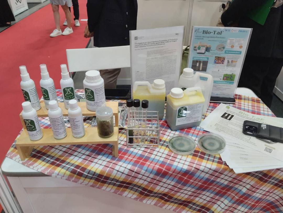 ผลงานวิจัยเรื่อง ไบโอแทฟ สูตรสำเร็จอิมัลชันสูตรใหม่ของเชื้อไตรโคเดอมาสำหรับควบคุมโรคพืช โดย ผศ.ดร.ปริศนา วงค์ล้อม นางสาวสุชาวดี เขียวเล่ง นายฟากิฮ์ ลาเต๊ะนือริง รศ.ดร.อนุรักษ์ สันป่าเป้า ที่ปรึกษา คณะเทคโนโลยีและการพัฒนาชุมชน