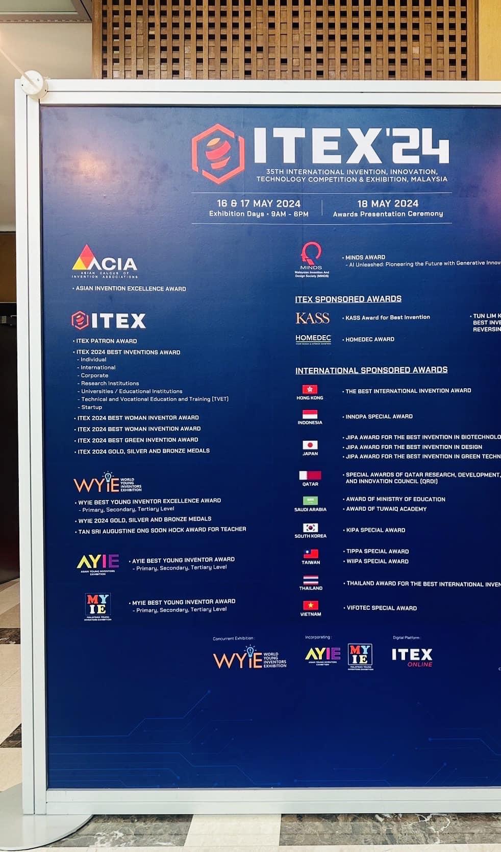 มหาวิทยาลัยทักษิณ ได้นำทีมนักวิจัยที่ผ่านการพิจารณาคัดเลือกผลงานจากสำนักงานการวิจัยแห่งชาติ (วช.) เข้าร่วมประกวดและจัดแสดงในงาน The 35th International Invention, Innovation andTechnology Exhibition (ITEX 2024) ระหว่างวันที่ 16 – 18 พฤษภาคม 2567 ณ กรุงกัวลาลัมเปอร์ สหพันธรัฐมาเลเซีย จำนวน 2 เรื่อง ดังนี้