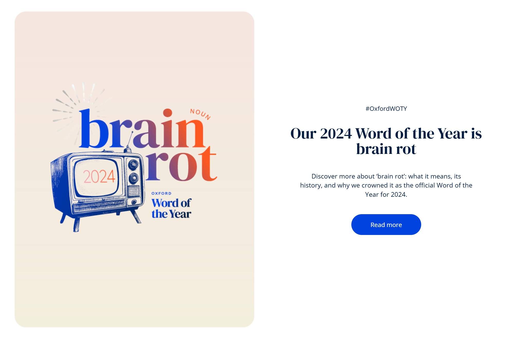 เป็นข่าวฮือฮาอยู่ไม่น้อย เมื่อ Oxford English Dictionary สำนักพิมพ์มหาวิทยาลัยเคมบริดจ์ (Oxford University Press) ประกาศให้คำว่า Brain Rot เป็นคำศัพท์แห่งปี ประจำปี 2024 (Oxford Word of the Year 2024) โดยให้คำนิยามความหมาย Brain Rot ว่า “สมองเน่า” หมายถึงความเสื่อมถอยทางจิตใจและสติปัญญา อันมีสาเหตุและผลกระทบมาจากการบริโภค เนื้อหาสาระ ข้อมูลข่าวสาร ที่มีคุณภาพและคุณค่าต่ำ ทางโซเชียลมีเดียและอินเทอร์เน็ต ที่เติบโตและขยายตัวอย่างรวดเร็วในปัจจุบัน “จนล้นเกิน” กระทั่งเกิดผลกระทบในทางลบในวงกว้างต่อปัจเจกบุคคลและสังคมในมิติต่าง ๆ
