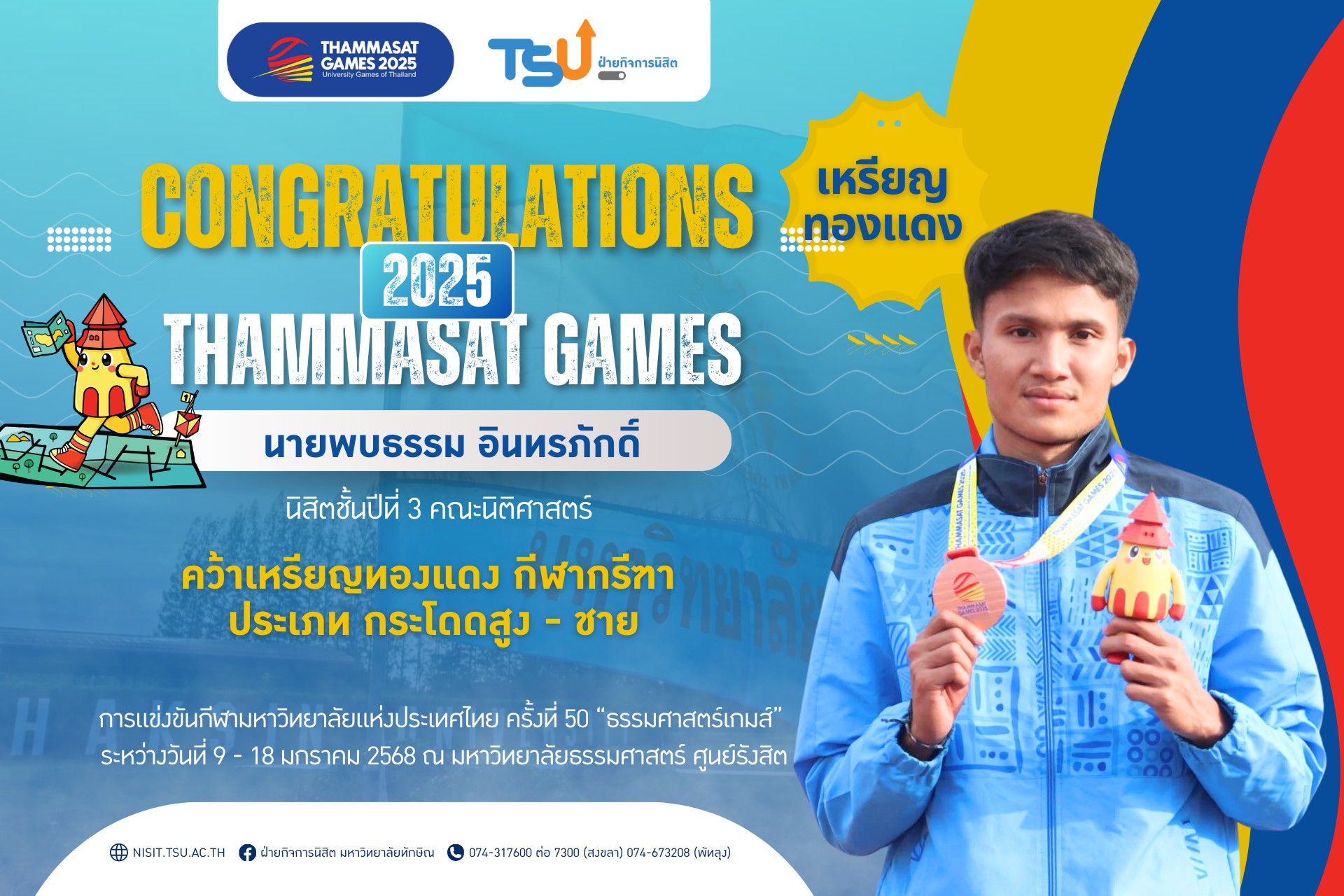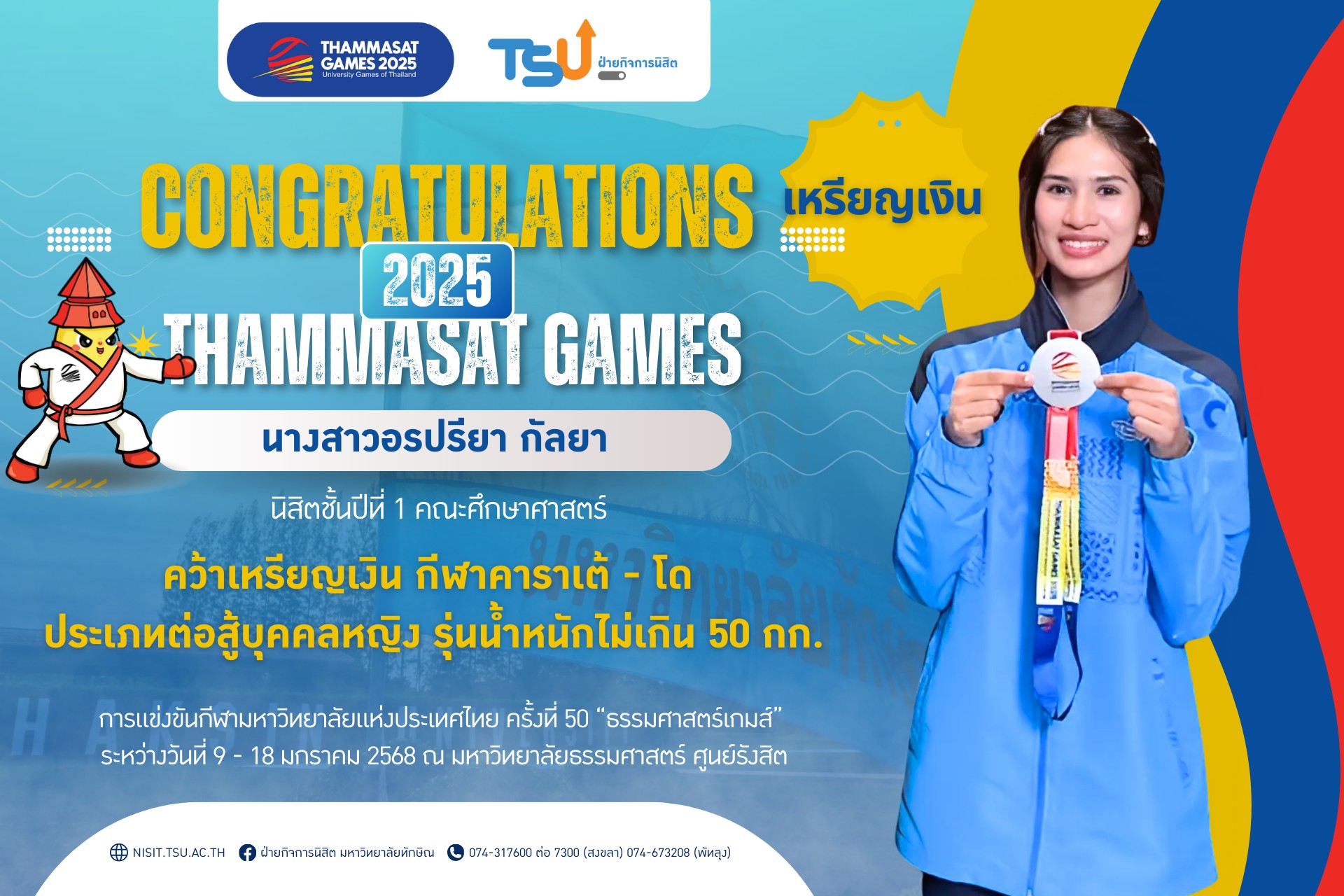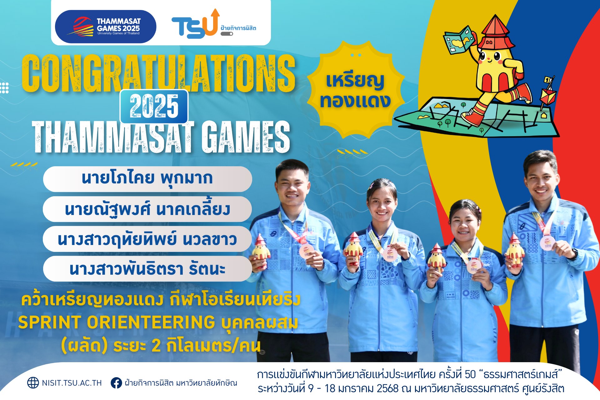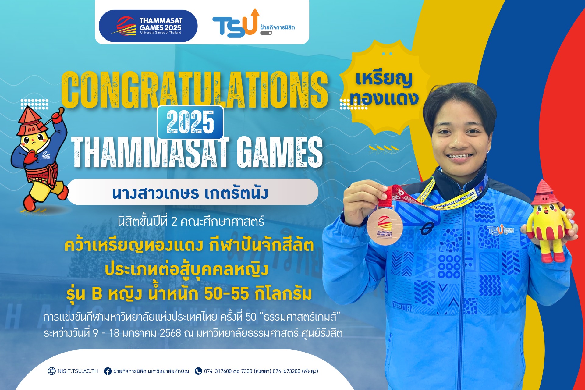 จากการเข้าร่วมแข่งขันกีฬามหาวิทยาลัยแห่งประเทศไทย ครั้งที่ 50 “ธรรมศาสตร์เกมส์” ณ มหาวิทยาลัยธรรมศาสตร์ ศูนย์รังสิต