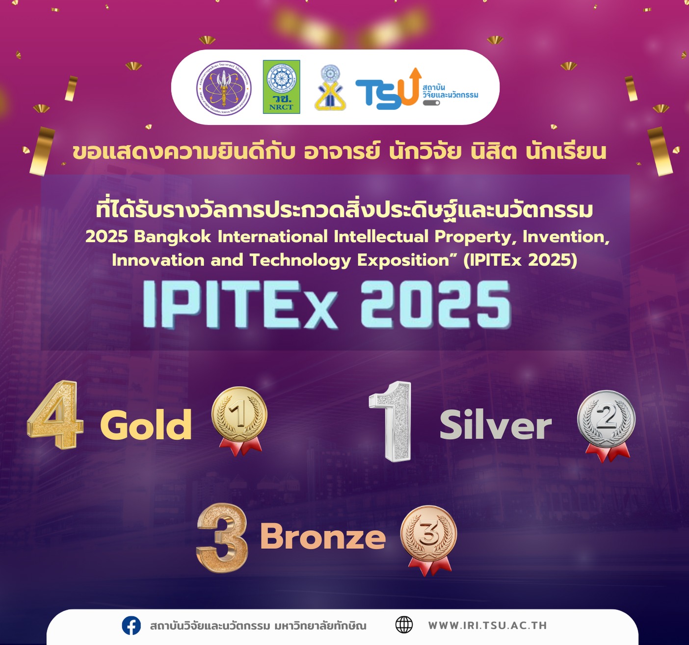 รางวัลสิ่งประดิษฐ์และนวัตกรรมนานาชาติ “2025 Bangkok International Intellectual Property, Invention, Innovation and Technology Exposition” (IPITEx 2025)