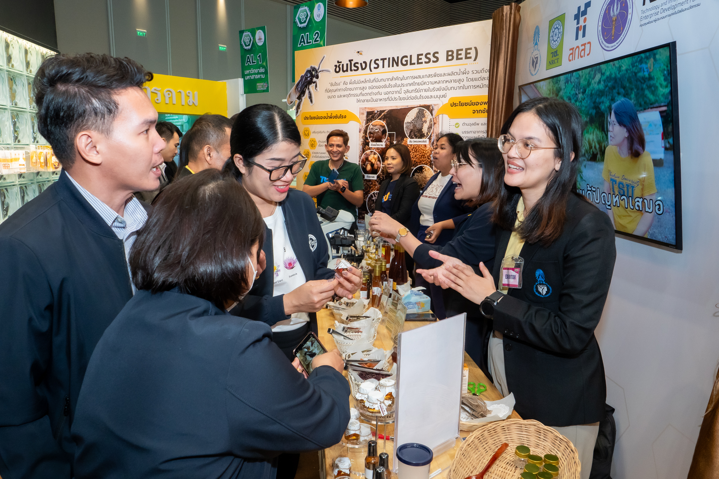 ในปีนี้มหาวิทยาลัยทักษิณ โดยสถาบันวิจัยและนวัตกรรม ได้ยกผลงานวิจัยเด่นเรื่อง “ชันโรง” ซึ่งเป็นแมลงผสมเกสรที่มีบทบาทสำคัญต่อระบบนิเวศและการเกษตร มาจัดแสดงในนิทรรศการประเด็น “การวิจัยและนวัตกรรมเพื่อยกระดับห่วงโซ่คุณค่าชันโรงในพื้นที่ภาคใต้ตอนกลาง ภายใต้โมเดลเศรษฐกิจ BCG” ที่บูธนิทรรศการ AL2 มหาวิทยาลัยทักษิณ พร้อมกิจกรรม Workshop และเวทีเสวนา เพื่อเปิดพื้นที่การเรียนรู้และต่อยอดองค์ความรู้สู่ผู้สนใจทั่วประเทศตั้งแต่ชนิดของชันโรง รังเลี้ยง อาหาร และผลิตภัณฑ์จากชันโรง
